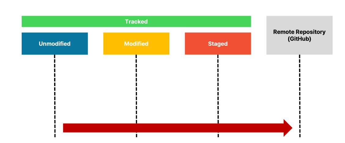 git add 명령어를 통해 Staged된 파일들을 commit에 포함Unmodified 상태로 만듦5. push