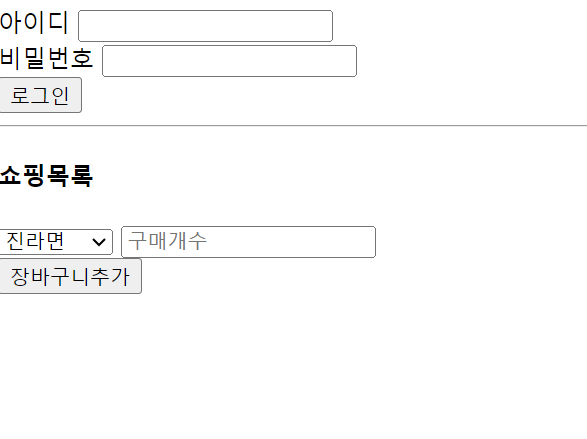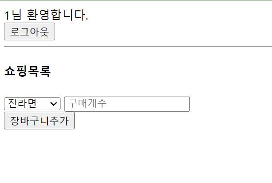 -> 로그아웃 버튼과 쇼핑목록 폼을 보여준다.