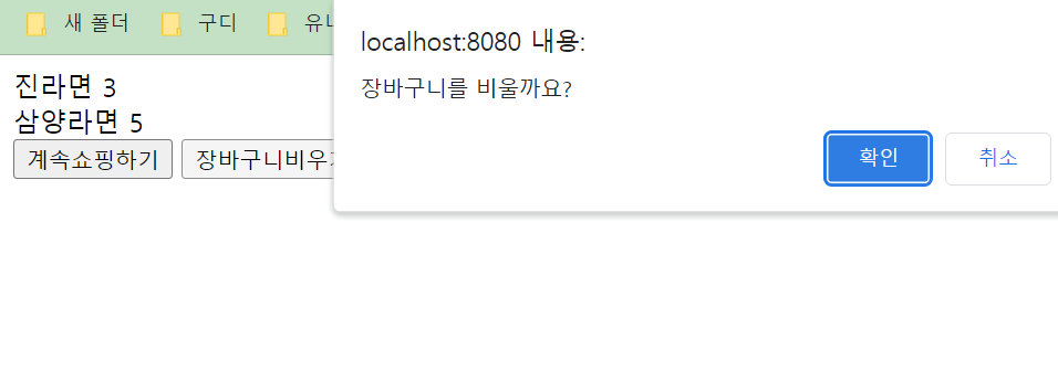 out.println("if(confirm('" + item + "을 장바구니에 담았습니다. 장바구니로 가려면 \"확인\" 계속 쇼핑하려면 \"취소\" 버튼을 누르세요')){");