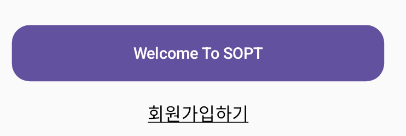 해당 화면은 로그인뷰며 보라색 버튼은 로그인 버튼, 아래 회원가입하기 text를 누르면 회원가입뷰로 넘어가게 구성되어 있다.