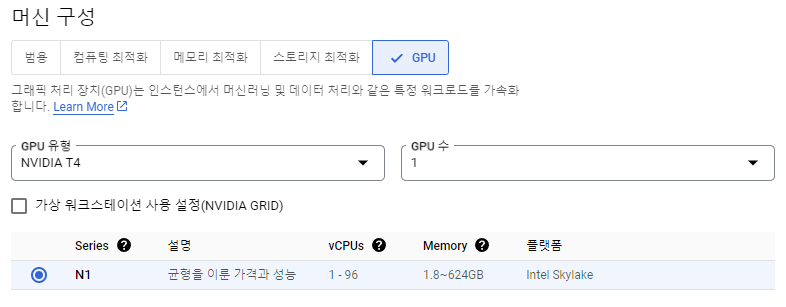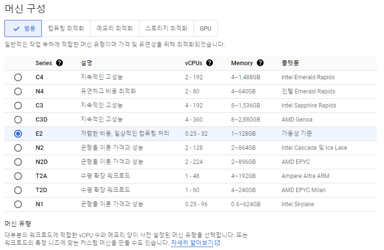 자신의 목적에 맞는 머신 유형을 선택하면 되고, 생성된 이후에도 언제든 머신 유형은 변경할 수 있다.