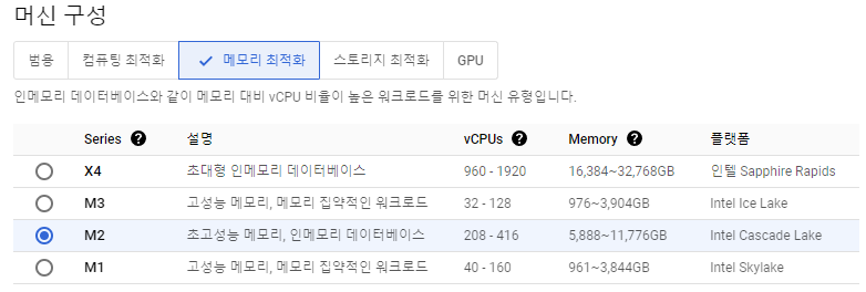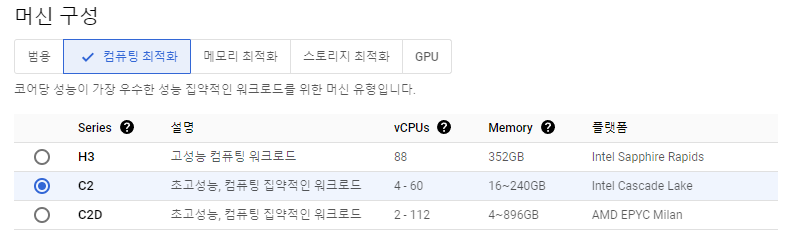 · Compute Engine에서는 사전에 정의함 머신 유형이 있다.