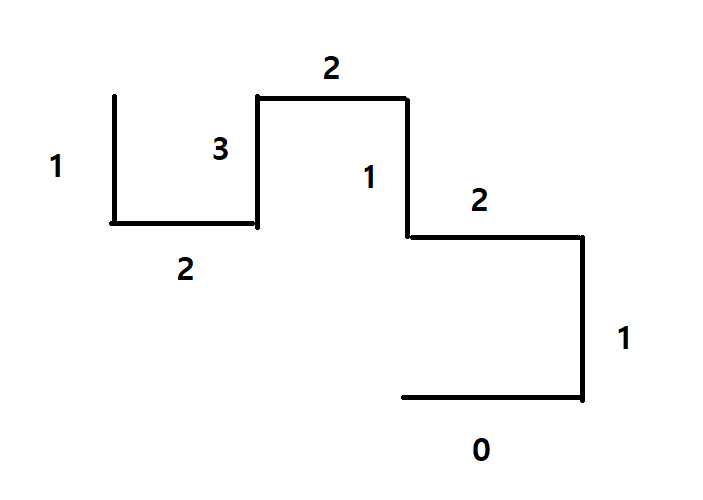 [0,1,2,1] 에서 전체 1을 더해주면 [1,2,3,2] 가 되고 이를 역순으로 하면 [2,3,2,1] 이 됩니다. 따라서 전체 이동방향은 [0,1,2,1,2,3,2,1] 이 됩니다.
