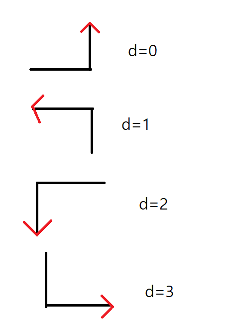 상하좌우를 [0,1,2,3] 으로 방향을 잡은 뒤 상하좌우에 따라서 이동을 합니다.