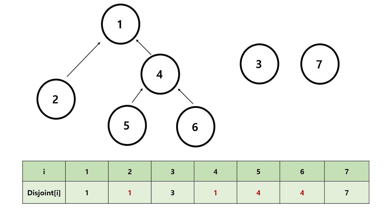 그렇다면 유니온 파인드만 실행한다면 위 그럼처럼 서로 집합들이 연결되어있다고 볼수 있습니다.