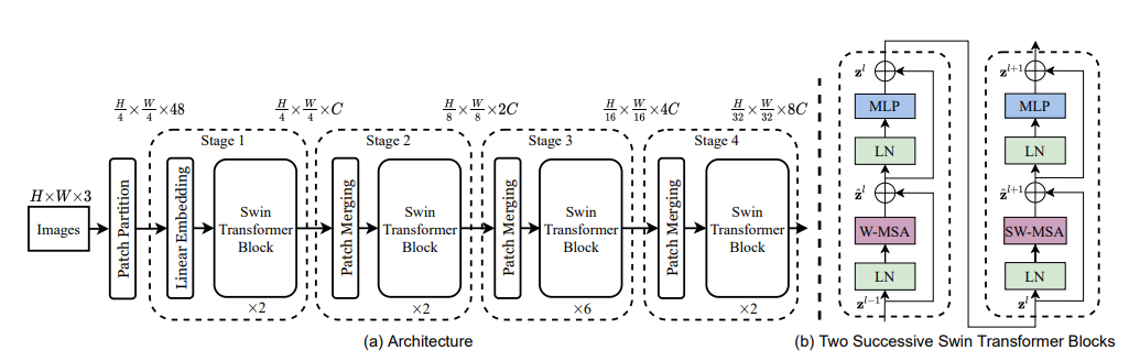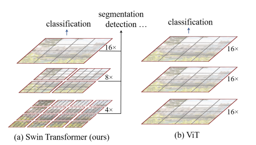 normal Transformer 와 달리 hierarchical 구조 제시 => object detection, segmentation에서 성능 좋음