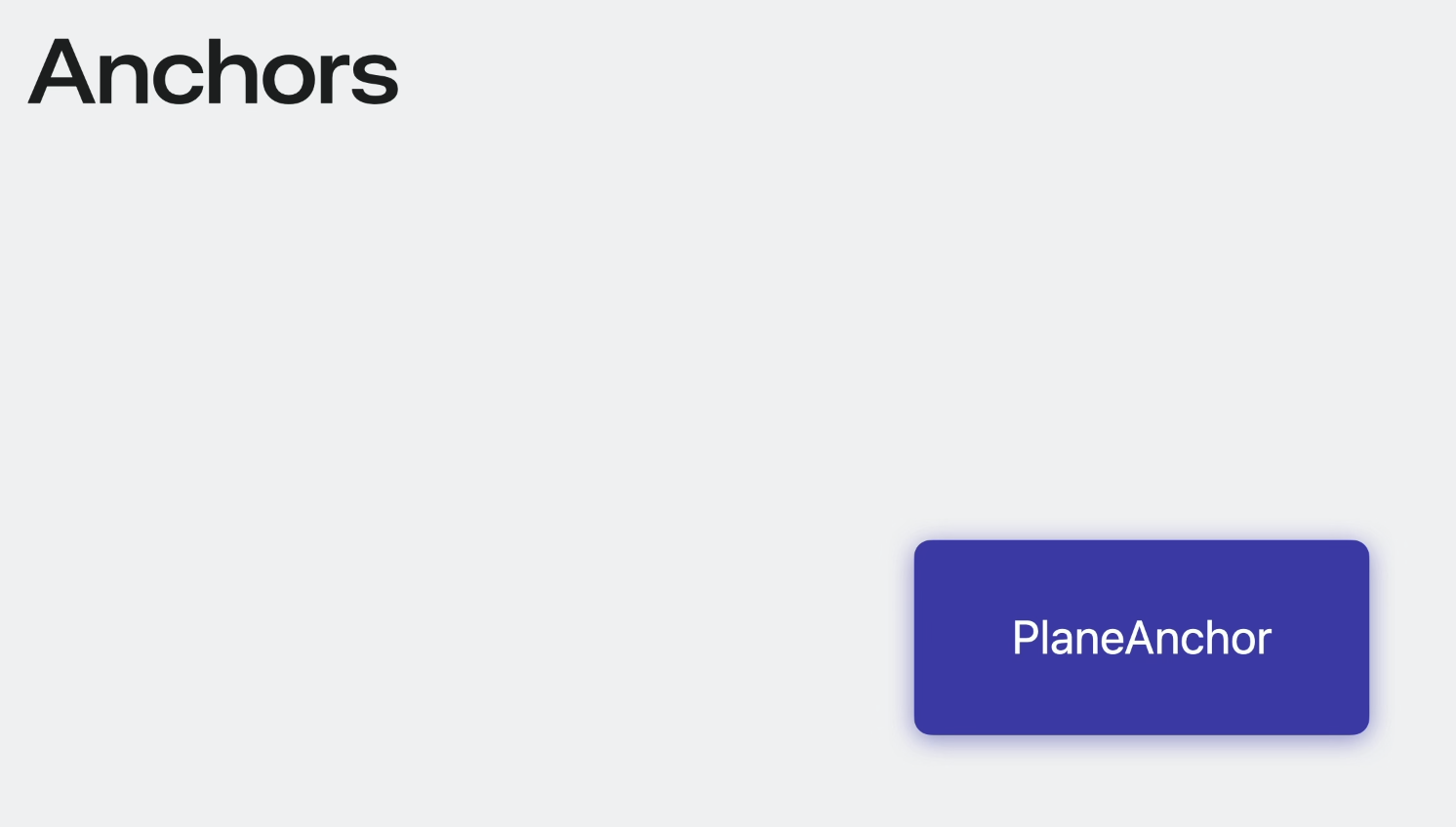 ARKit은 주변에서 평면 표면을 감지하여 PlaneAnchor의 형태로 정보를 제공한다. table에 보드 게임을 배치하거나 벽에 가상 포스터를 배치하는 등 표면에 가상 콘텐츠를 배치할 때 유용하다.