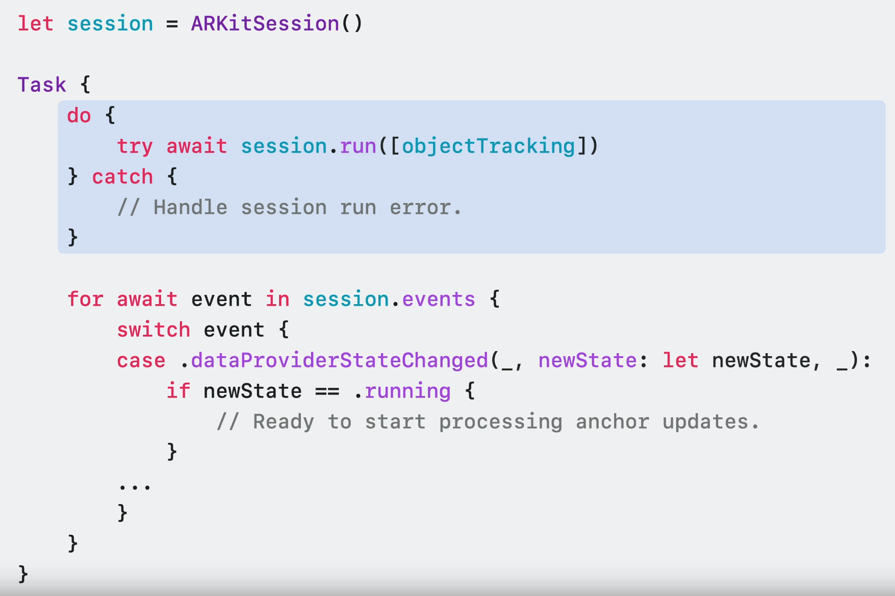 ARKitSession을 실행하려면 경험에 사용하려는 Data Provider 세트를 제공하면 된다.