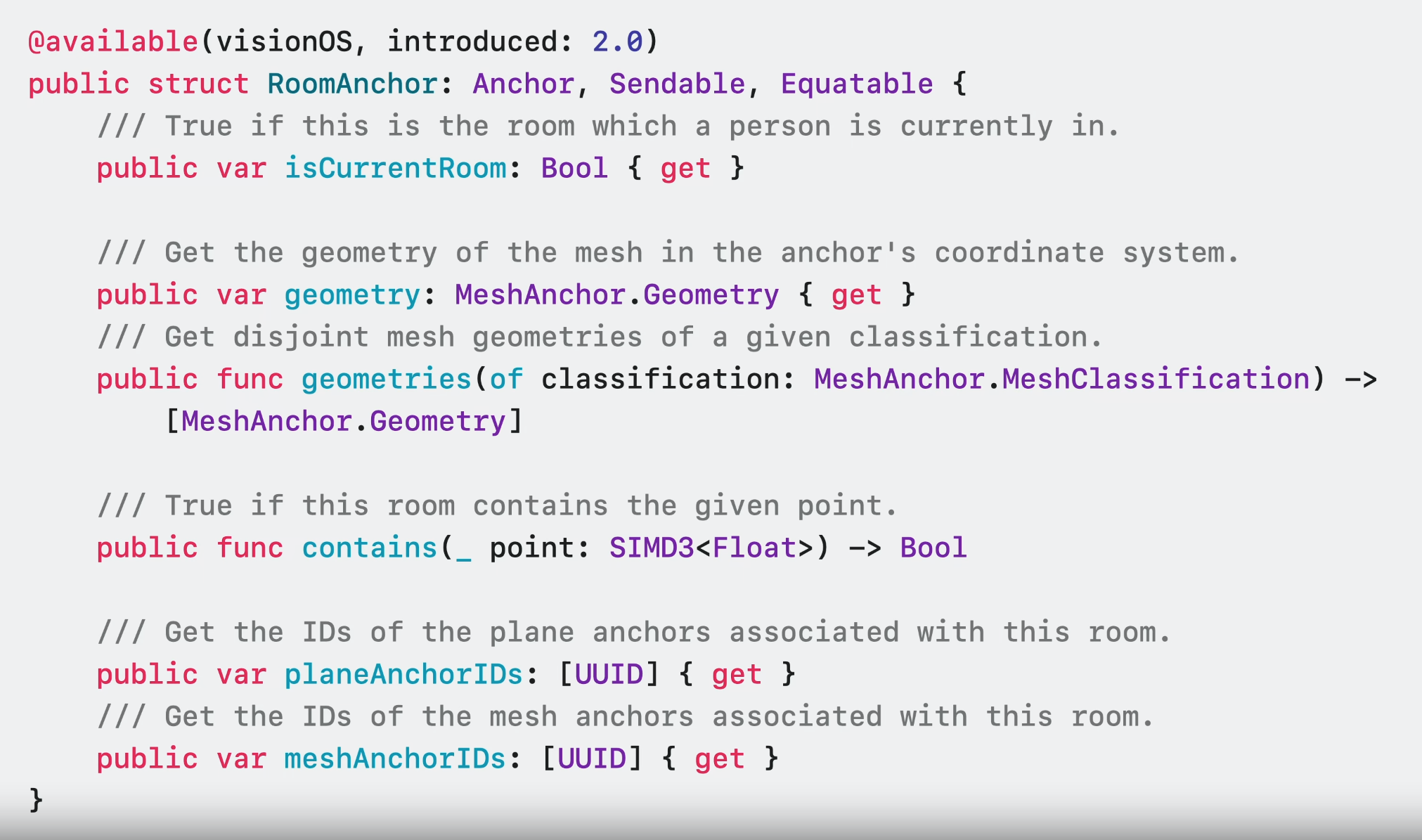 각 RoomAnchor는 한정된 특정 공간에 대한 공간 정보를 보유한다.
