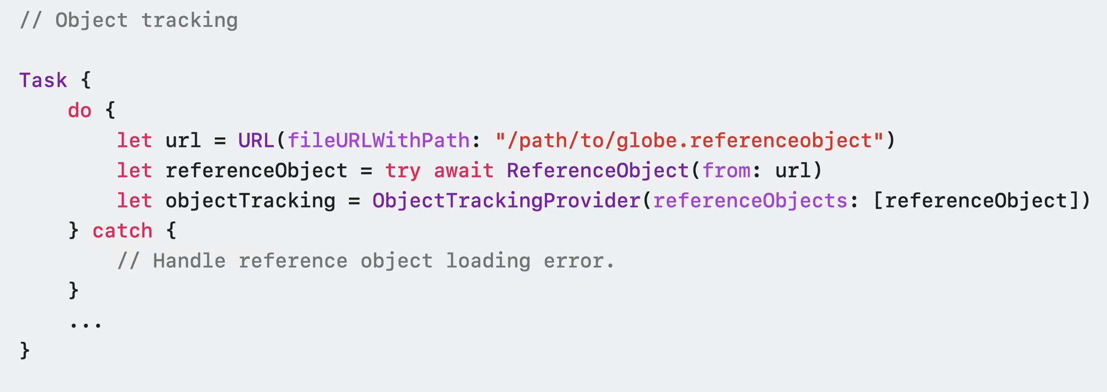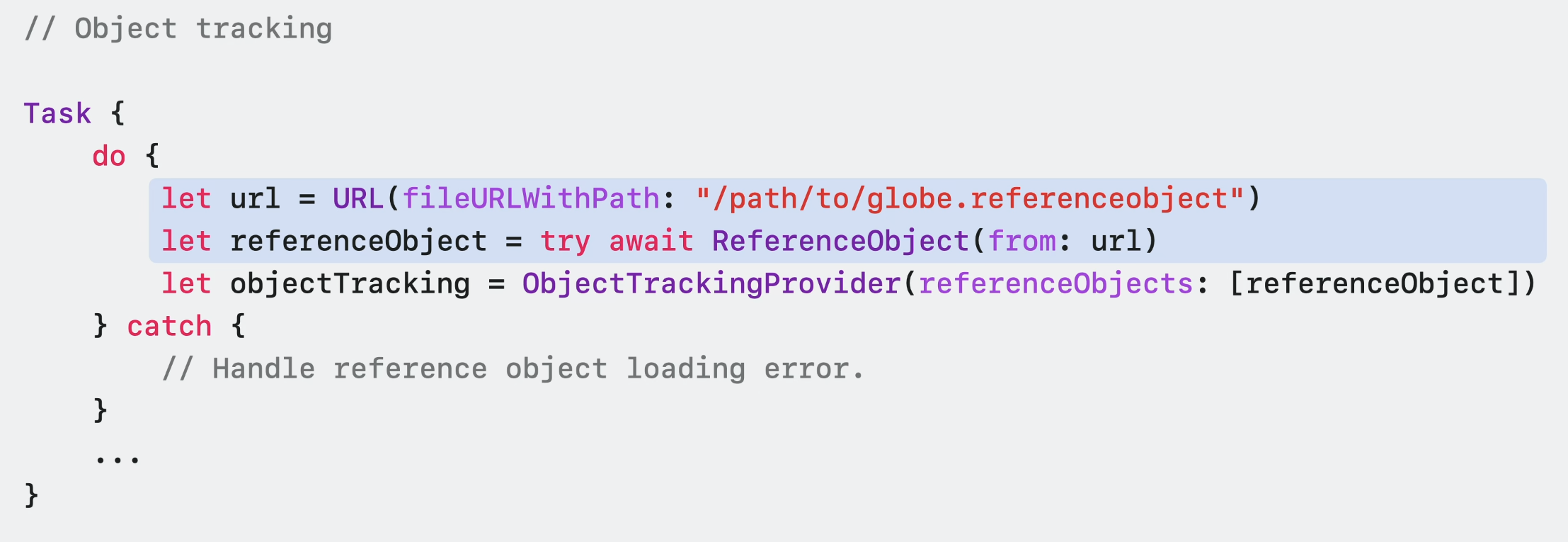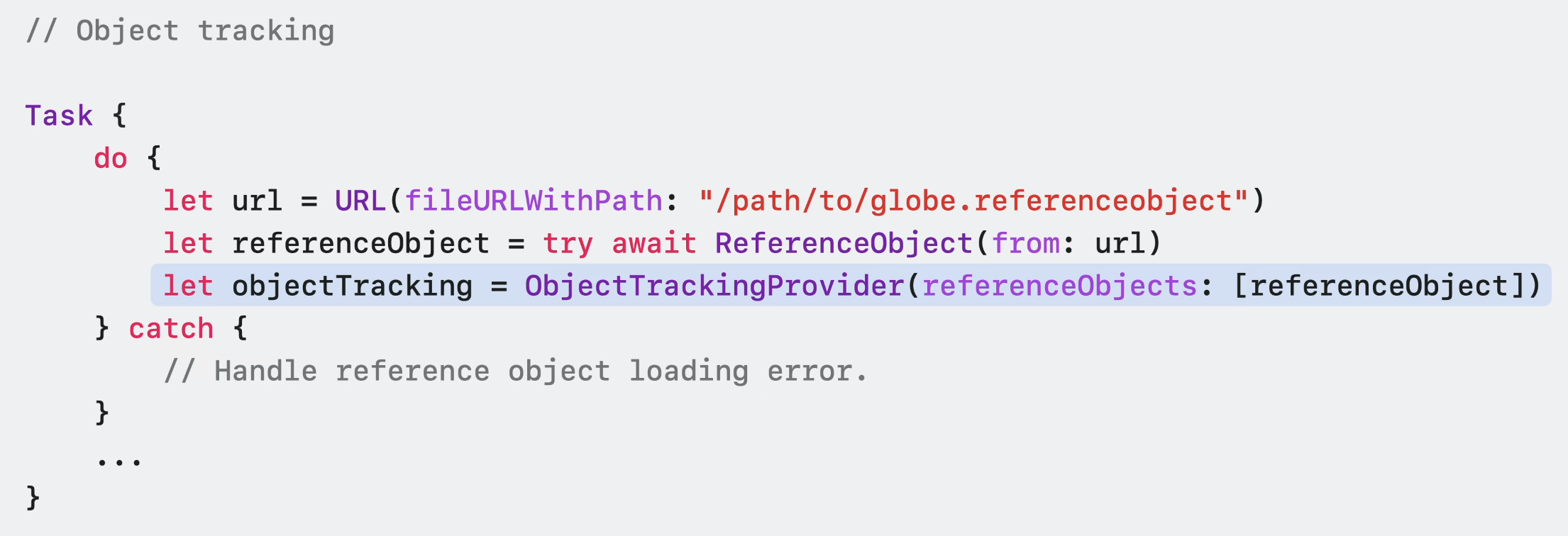 ReferenceObject를 성공적으로 불러온 후에는 이것으로 새 ObjectTrackingProvider를 구성할 수 있다.