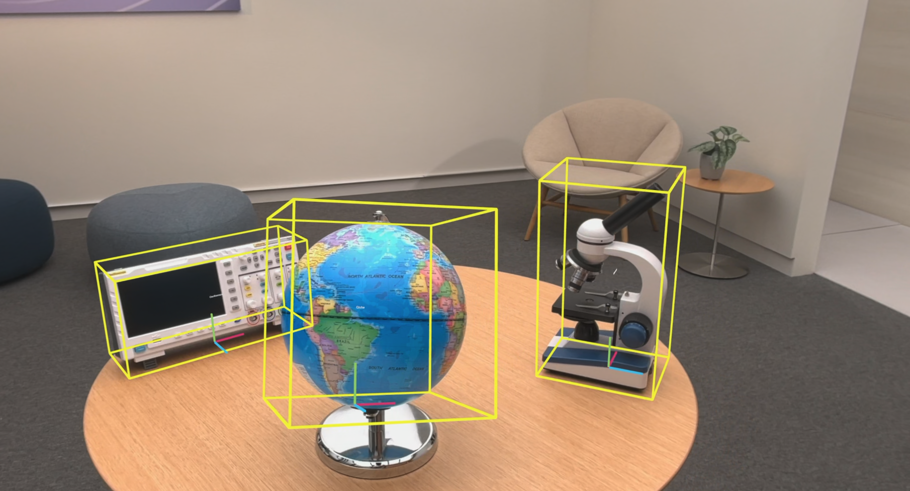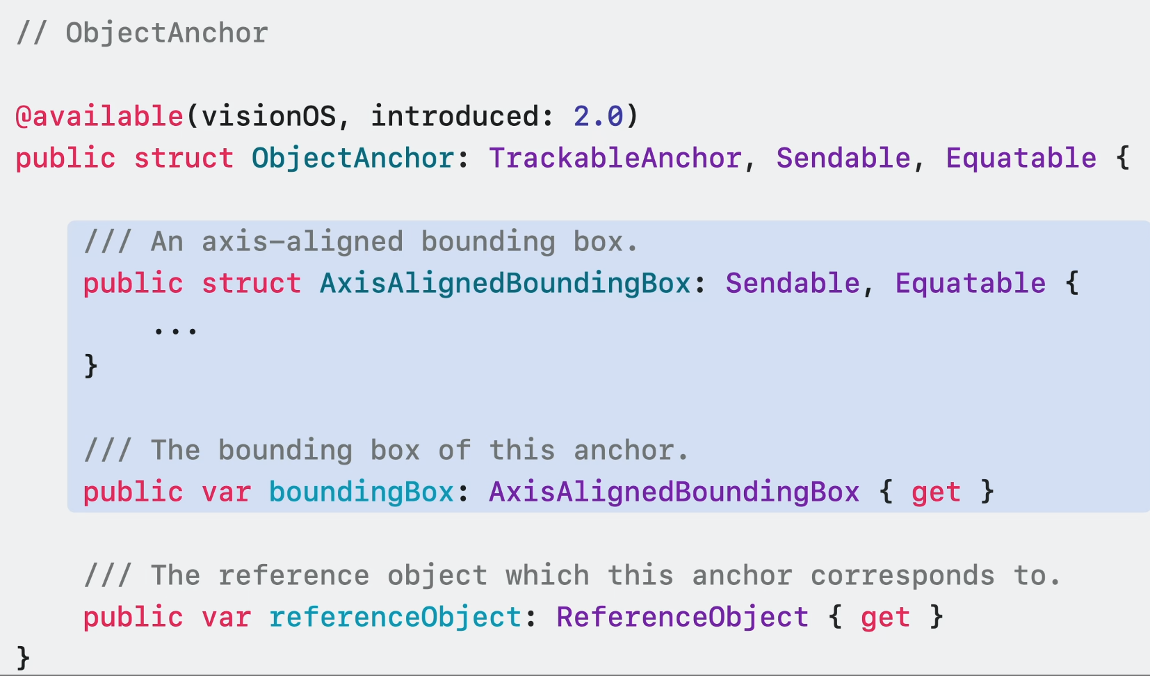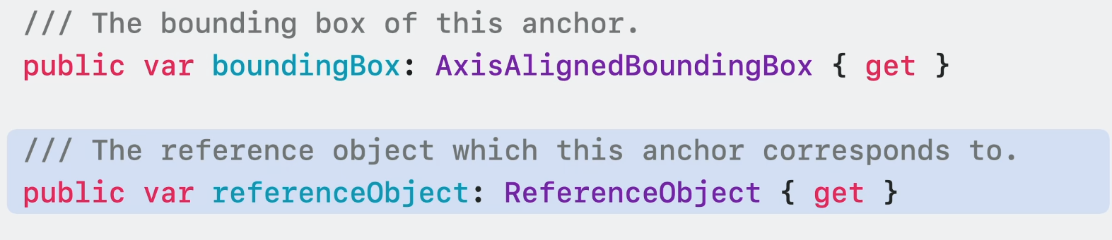 ObjectAnchor는 감지된 객체의 axis align된 바운딩 박스를 가지고 있다. 바운딩 박스의 중심과 범위는 물론 최소 및 최대 3D 좌표점을 얻을 수 있다.