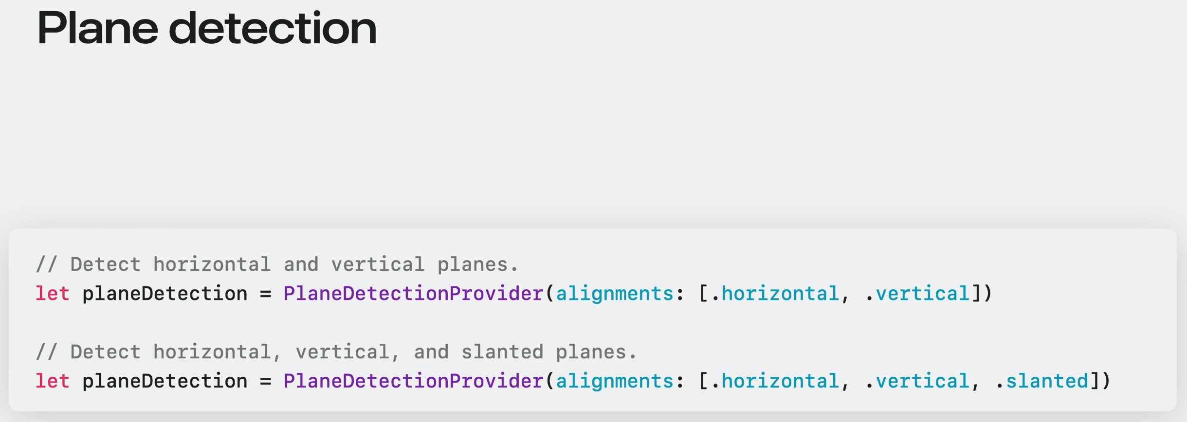 PlaneDetectionProvider는 감지된 수평 표면과 수직 표면을 앱에 알려줄 수 있다.