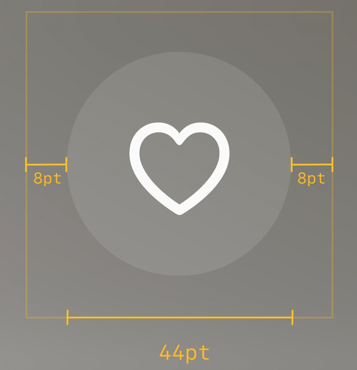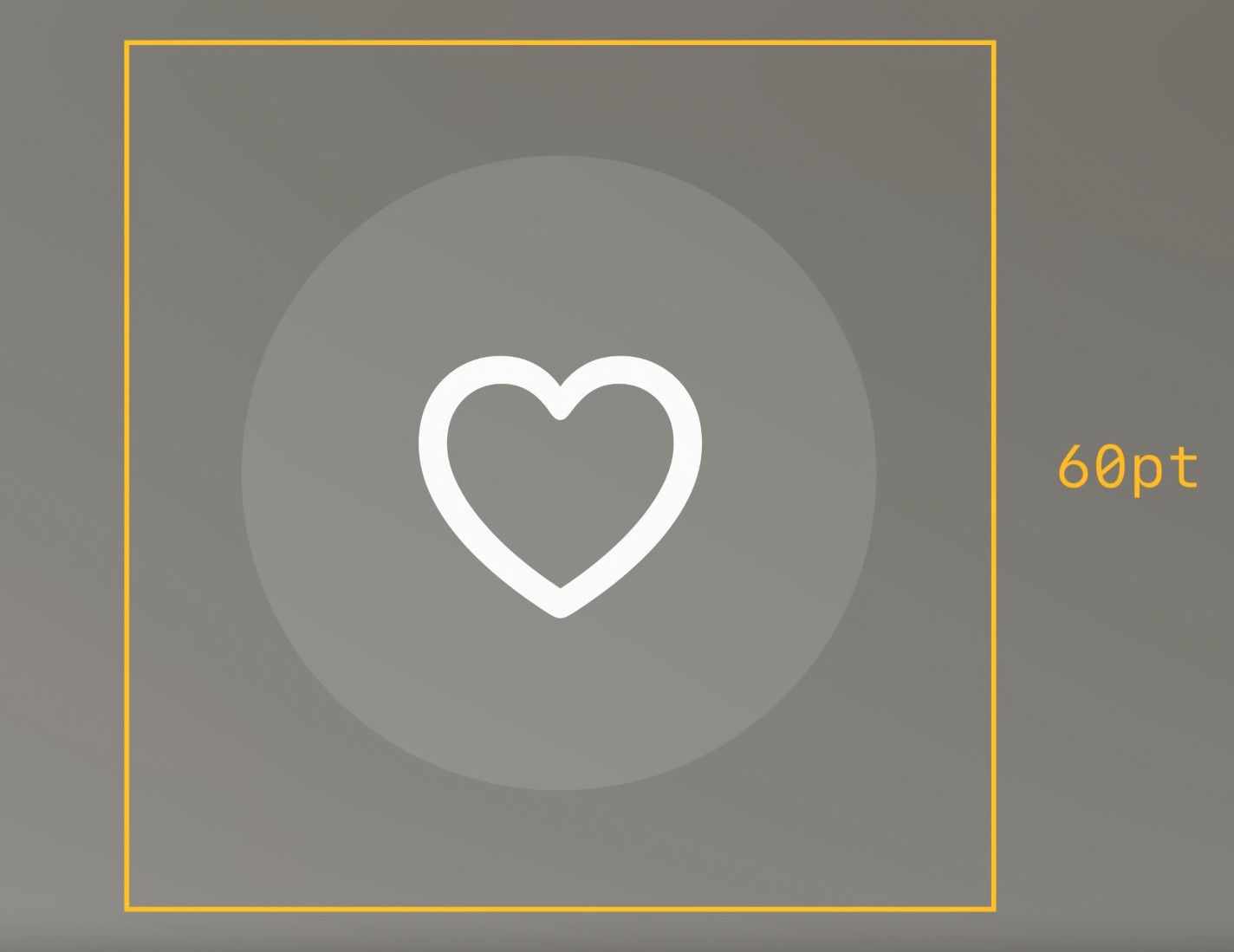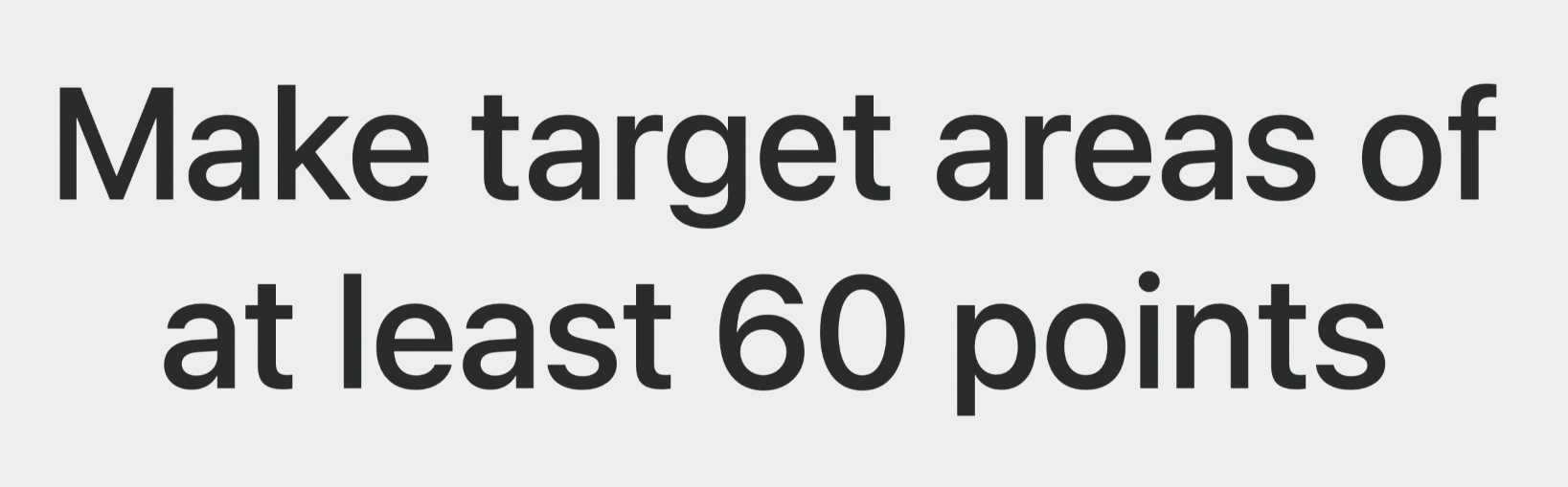 눈으로 사용하기 쉬운 UI를 만들려면 크기와 간격을 조합해서 최소 targeting 영역이 60pt를 준수해야 합니다.