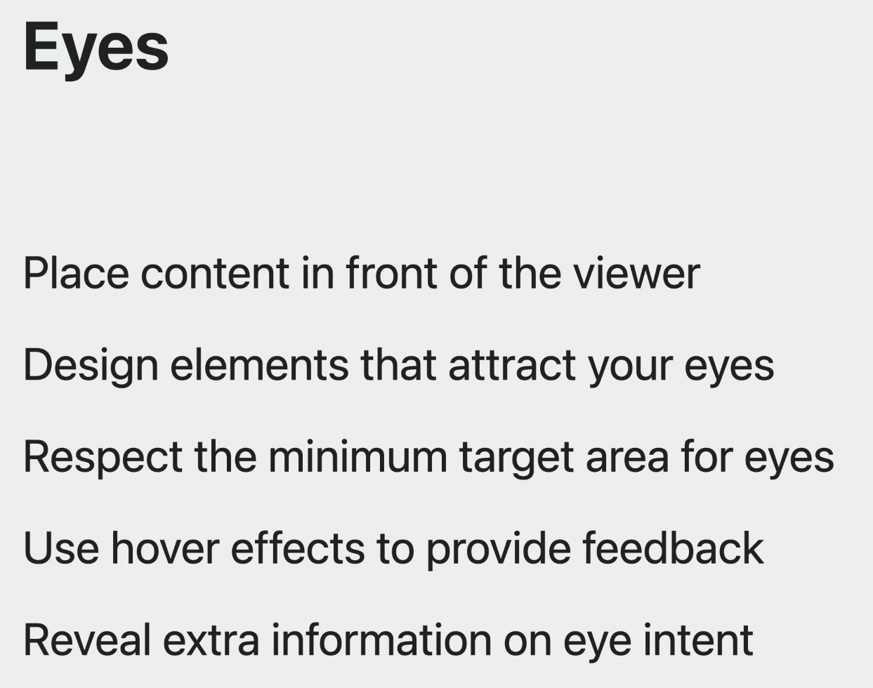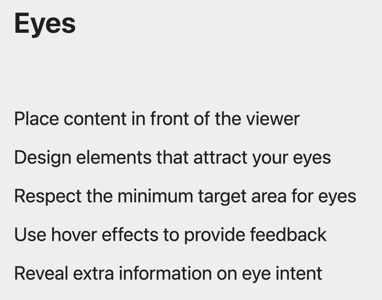 눈과 손에 대한 interaction을 디자인 하는 법에 대해 다룰 것이다.