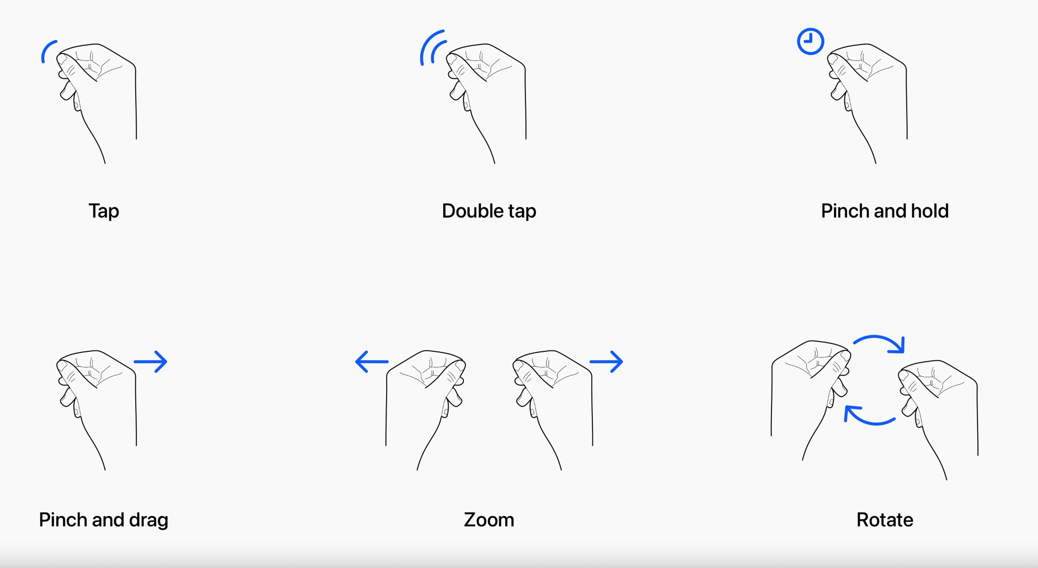 제스처는 시스템 전체에서 같은 방식으로 작동하며 Multi-touch 제스처와 비슷한 logic을 가지고 있다.