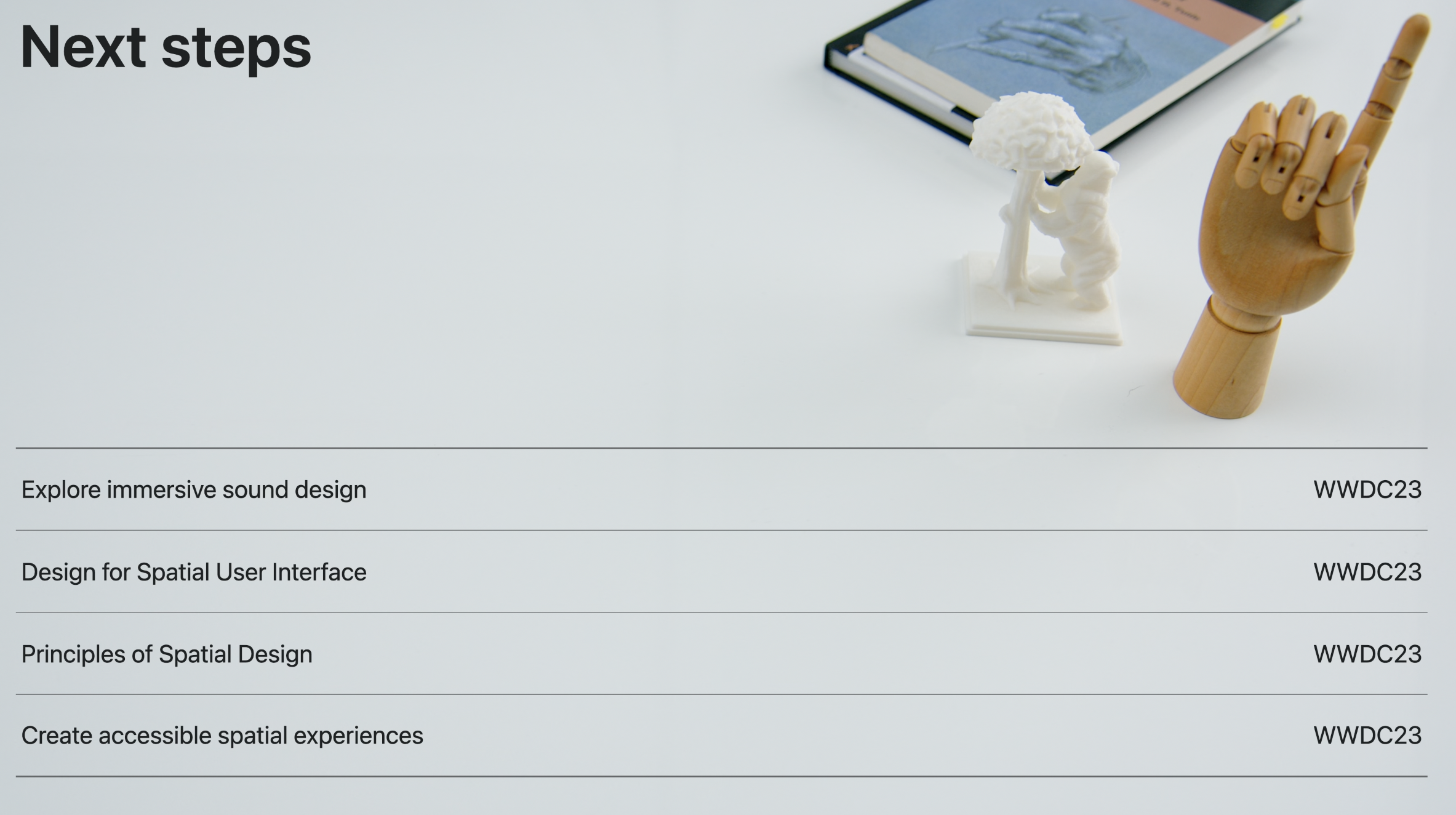 포인트와 레이아웃에 대해 더 학습하고 싶다면 'Design for spatial user interface'세션을 확인해라.