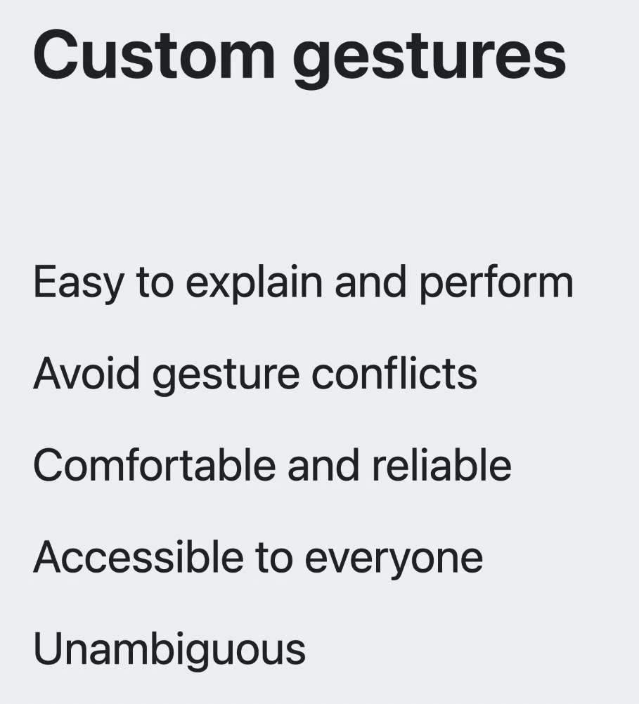 앱의 experience가 unique한 동작이라면 표준 제스쳐로는 표현이 어려울 것이다.