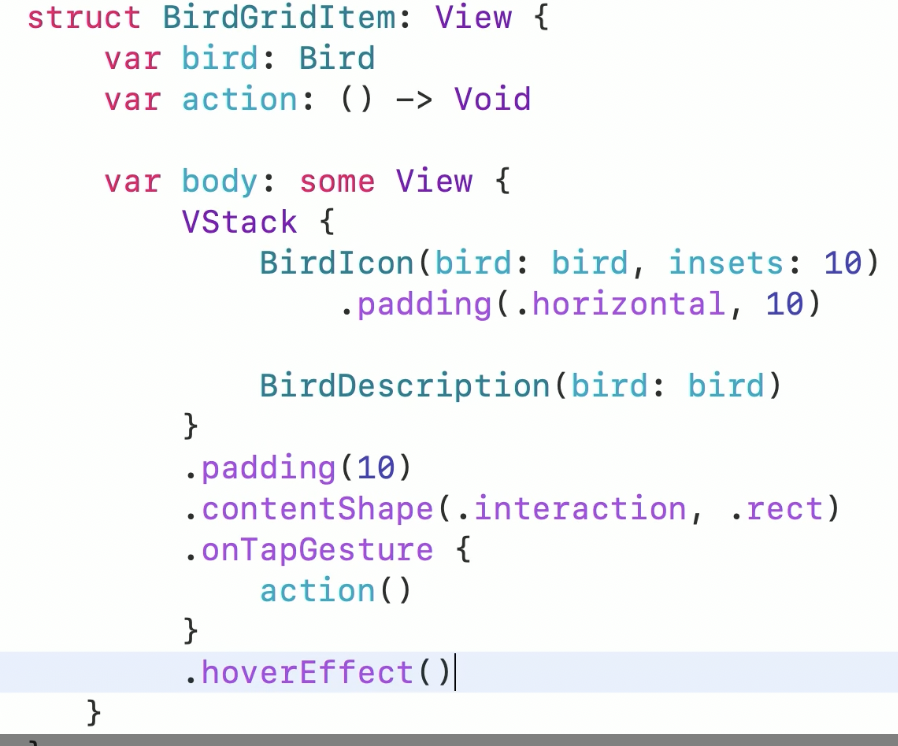 hoverEffect modifier는 view의 content shape를 읽는다.