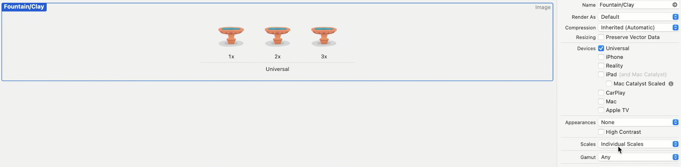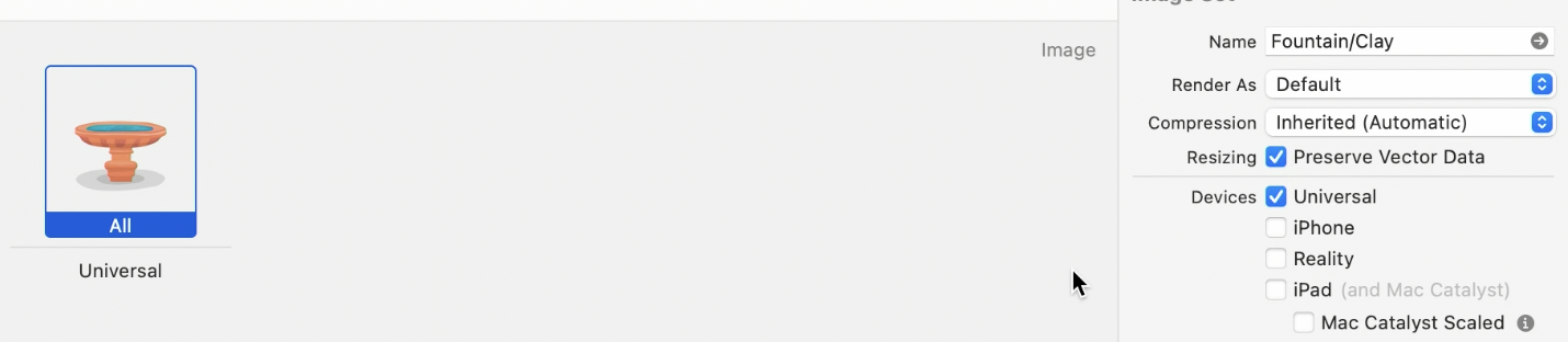 기존의 asset을 제거한 뒤 vector 이미지를 추가하여 'Preserve Vector Data'를 선택하여 콘텐츠가 모든 사이즈에 대해 스케일이 가능하도록 만들어준다.