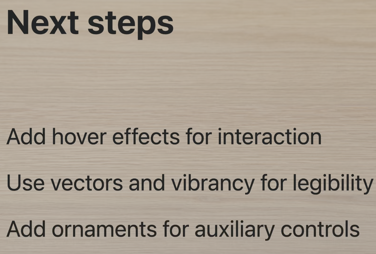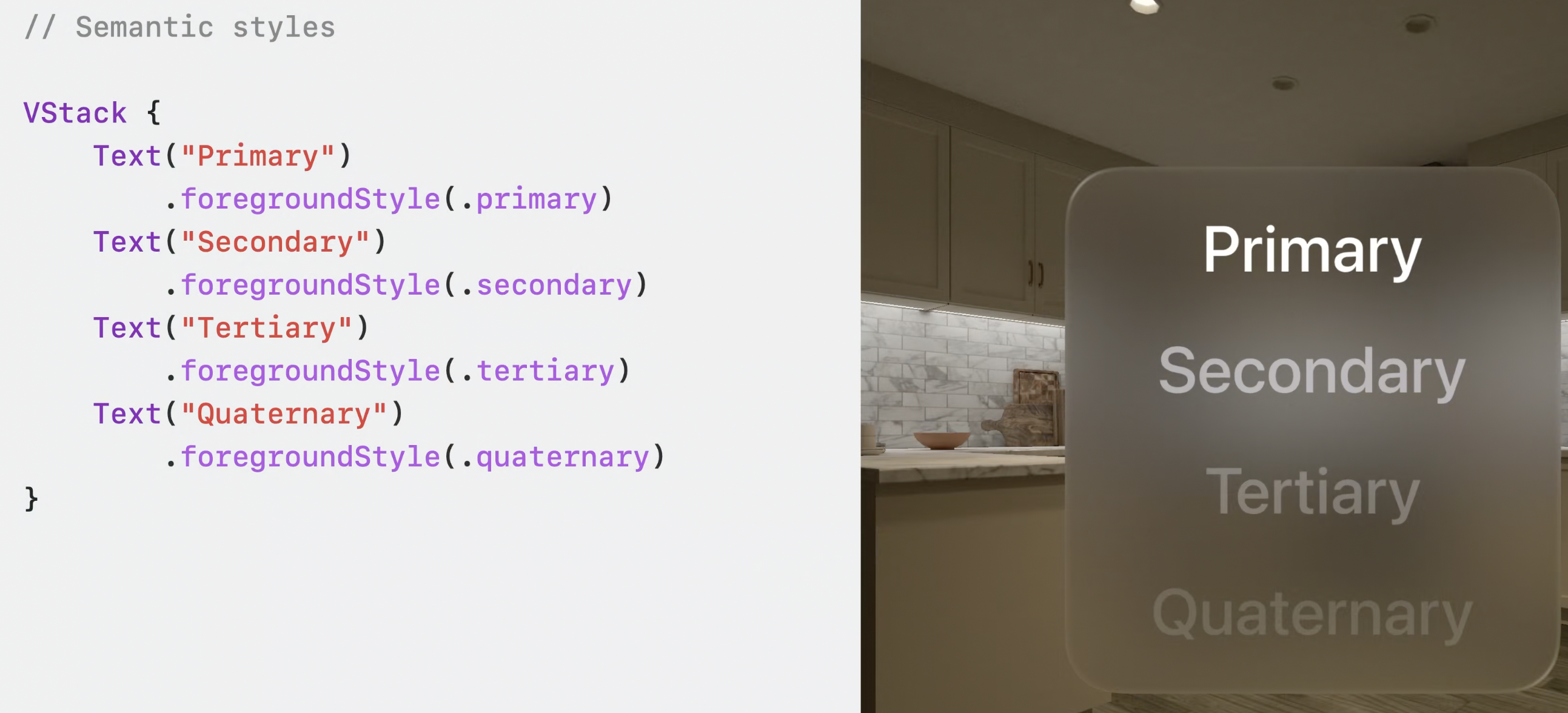 custom view, container를 만든다면 이 semantic style을 통해 glass가 얼마나 주변 환경에 적응하는지와 상관 없이 콘텐츠의 가독성을 높일 수 있다.