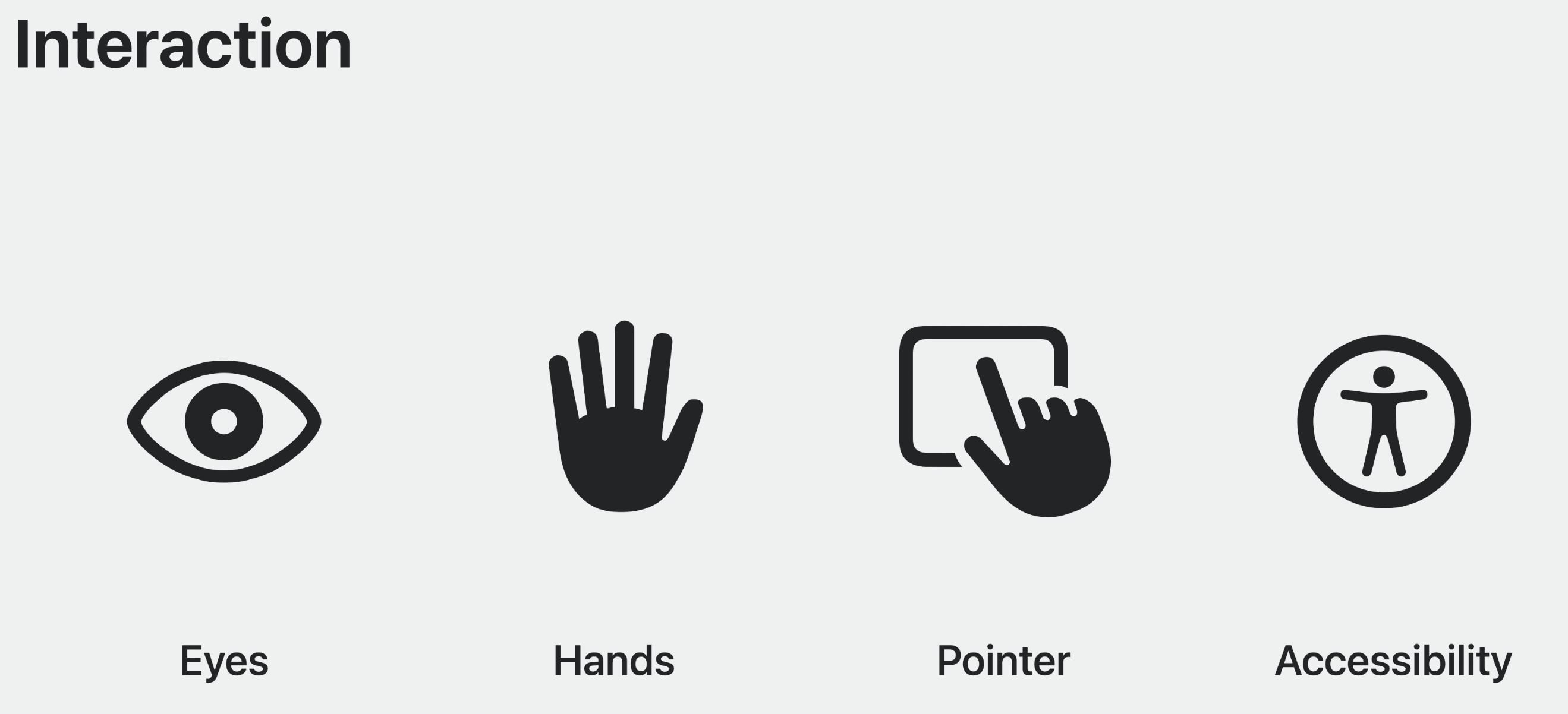Meet SwiftUI for spatial computing에서 봤듯이 앱과 interact 할 수 있는 4가지 방법이 있다.