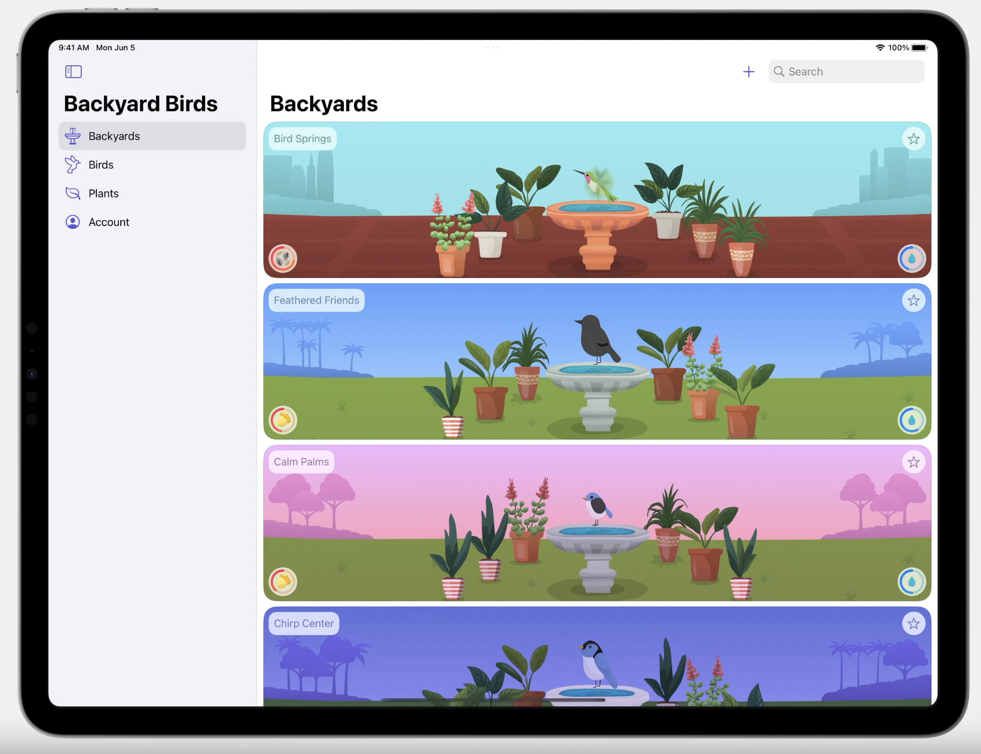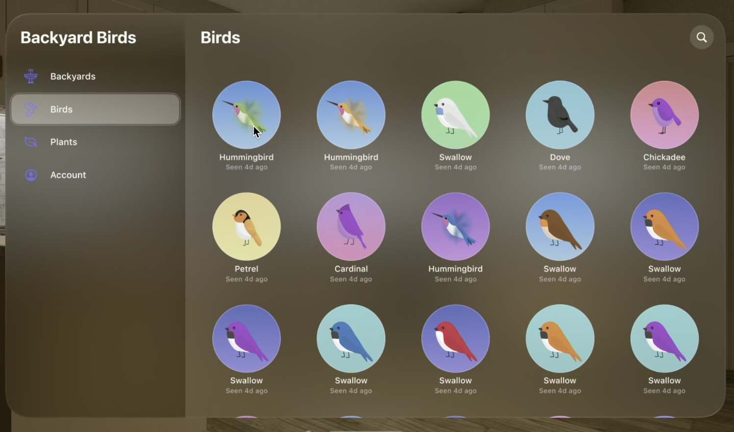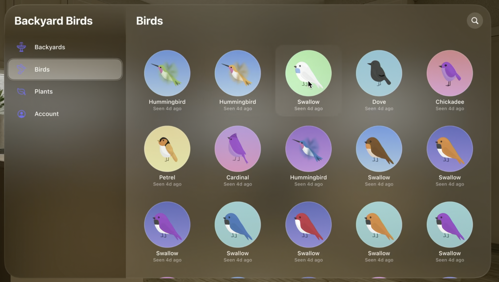 이 새에 대한 앱을 이용해 볼 것이다. 이 앱은 SwiftUI로 작성되었으며 multiplatform 앱에 대한 좋은 예시이다. 이 앱은 iPhone, iPad, Mac, Apple Watch를 지원한다. 이제 Bird가 shared space에서 노래하도록 만들어보자.