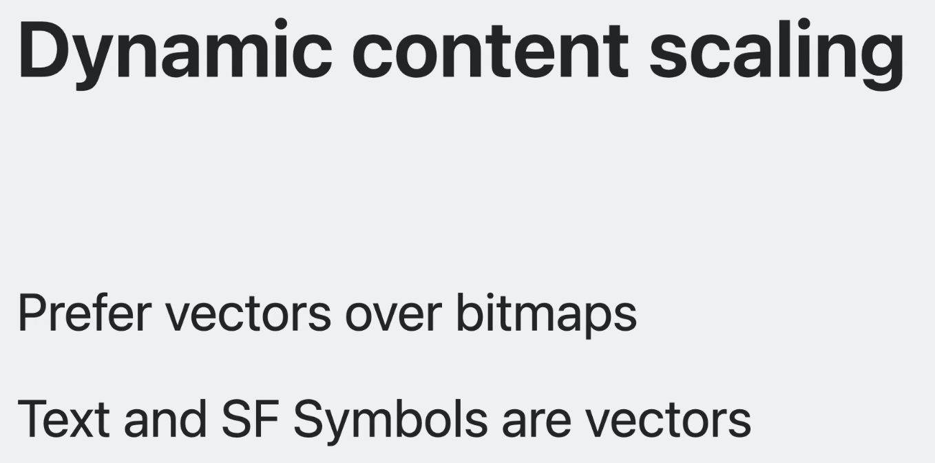시스템이 이를 하기 위해 vector asset을 제공해줘야한다. 왜냐하면 bitmap은 퀄리티를 줄이지 않고 scaling 할 수 없기 때문이다.