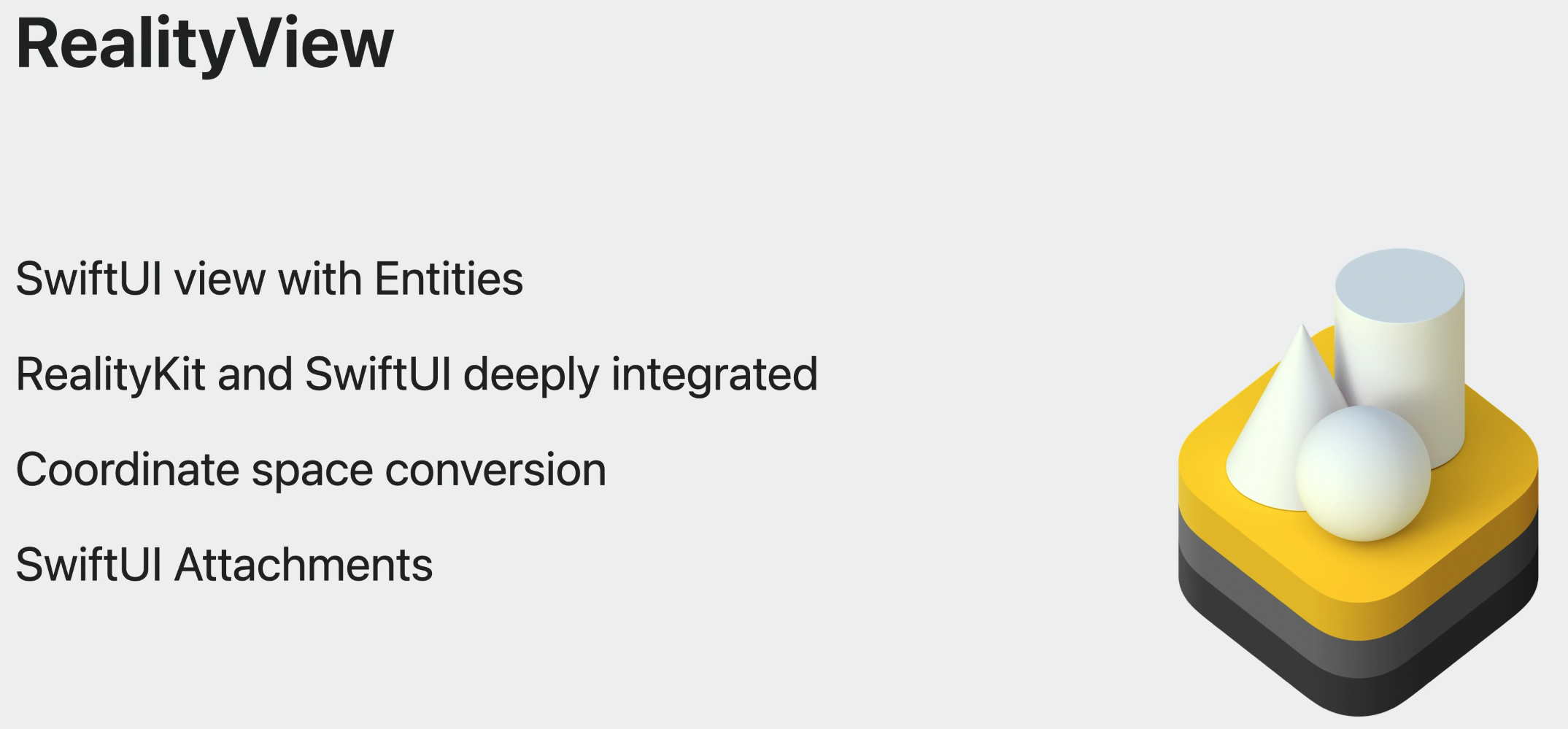 RealityView는 새로운 뷰이며, 몇 개의 entity던 SwiftUI 내에서 직접 관리를 가능하게 한다.