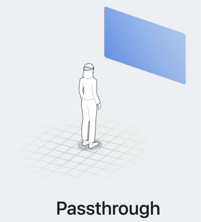 passthrough를 통해 콘텐츠를 실세계에 배치하고, 사용자가 여전히 주변과 연결되게 할 수 있다.