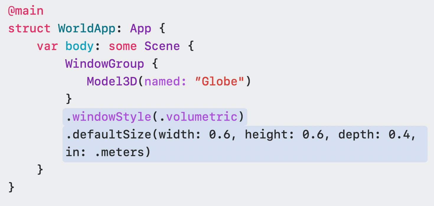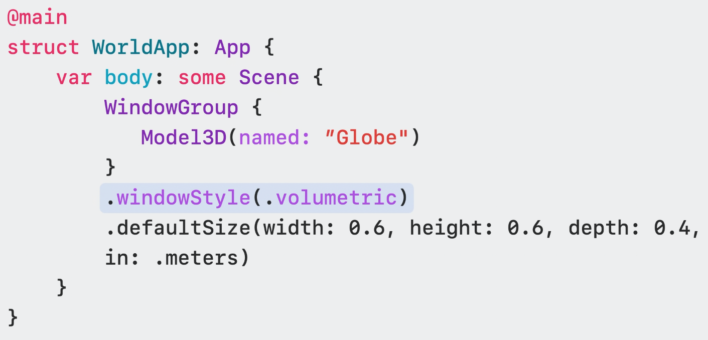 volume을 추가하려면 새로운 windowgroup을 생성하고 윈도우 스타일을 volumetric으로 설정해야 한다.