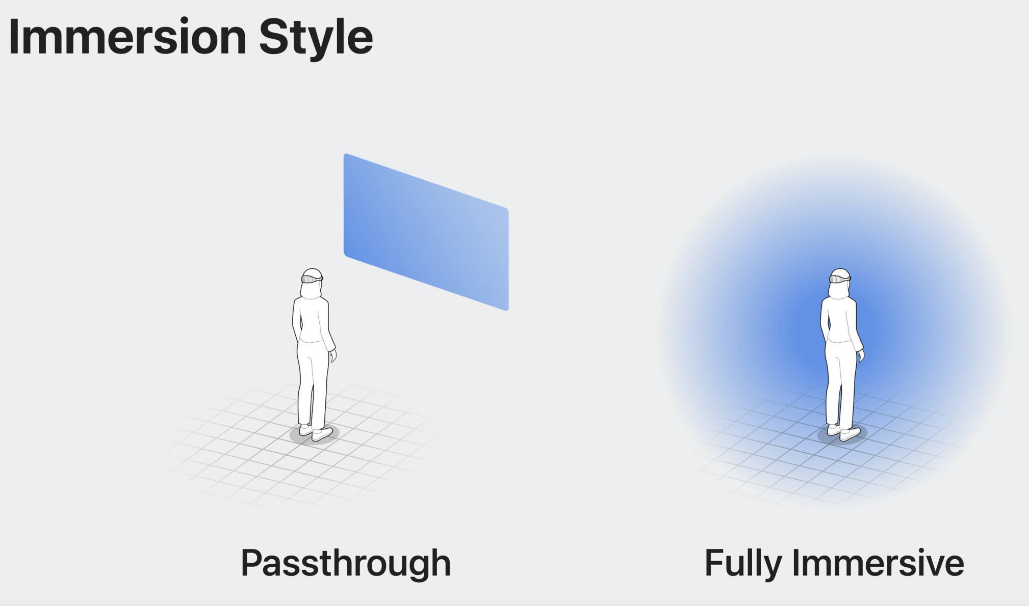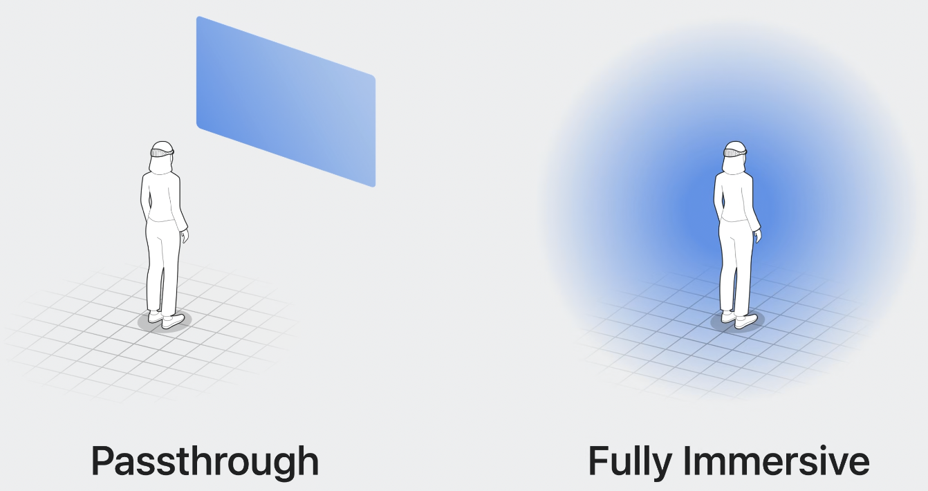 이 스타일은 초기에는 passthrough를 허용하지만, 디바이스 상단의 digital crown을 통해 완전한 몰입이 될 수도 있다.