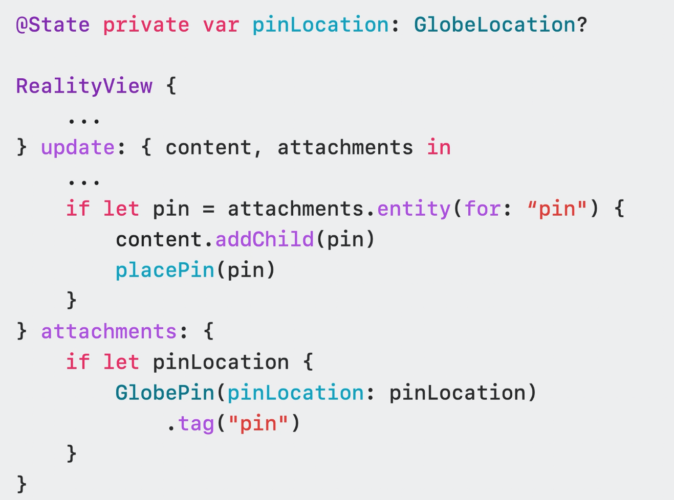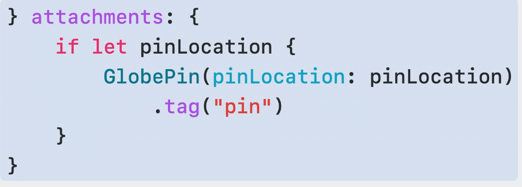Attachment clousre에서는 RealityView가 뷰를 entity로 translate 하게 해주는 tag 프로퍼티가 있는 SwiftUI 뷰를 추가할 수 있다.