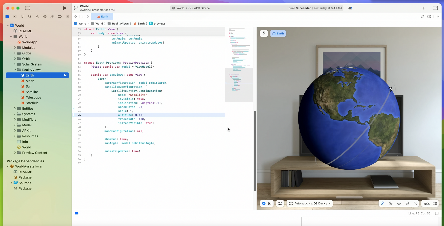 preview canvas는 에니메이션과 custom code를 포함한 RealityKit 코드를 시각화 하기 위한 3D를 지원한다.