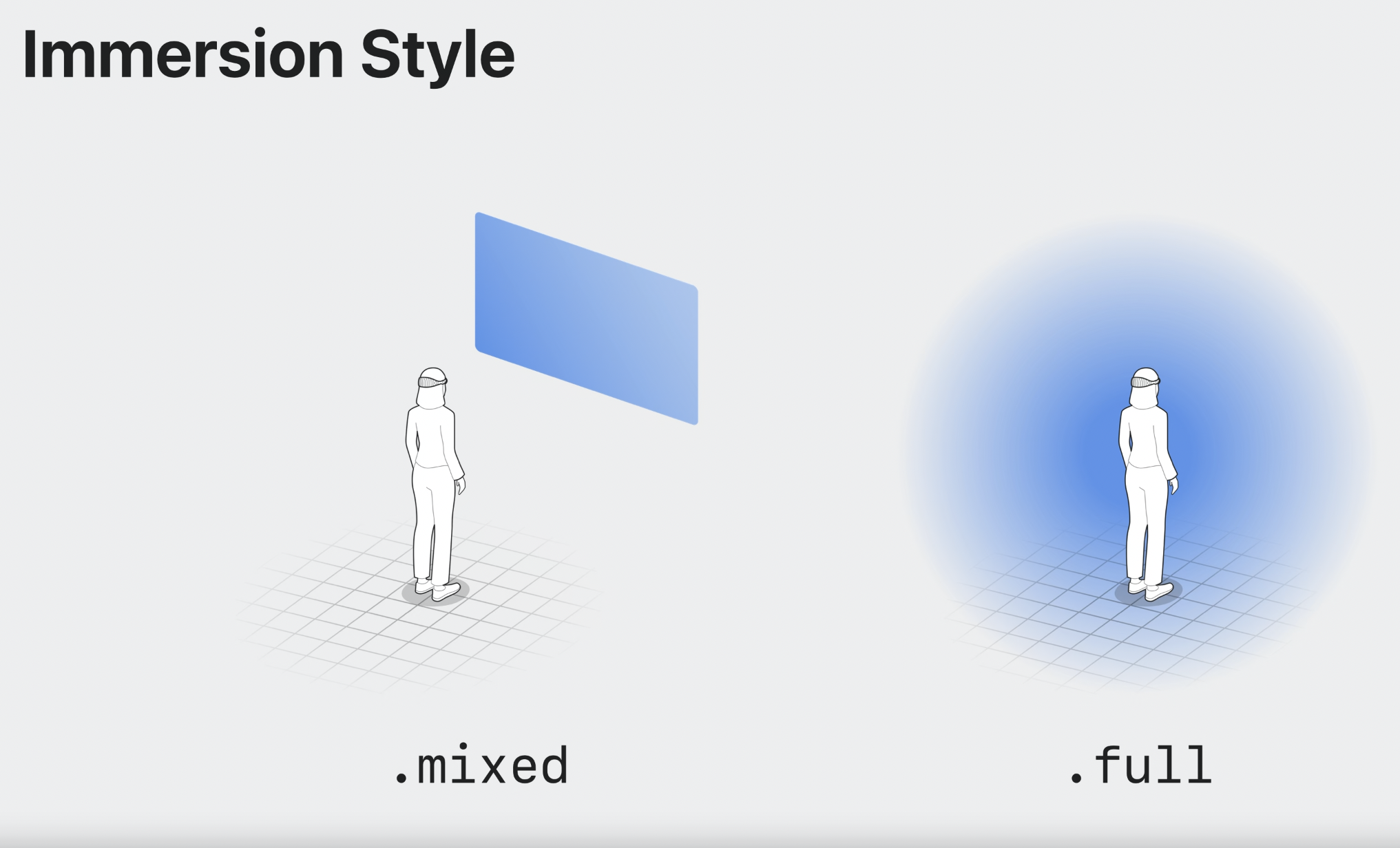 mixed sytle은 passthrough위에 app content를 layering한다. 이것이 immersion space의 기본 값이다.