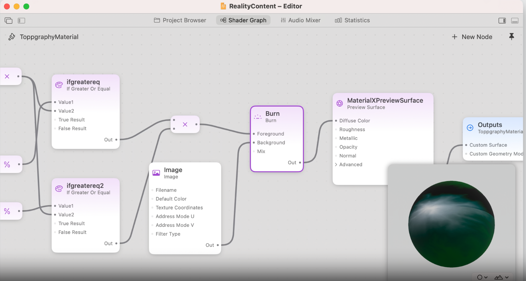 코드를 만지지 않고서도 노드 그래프를 사용하고, 빠르게 viewport에서 결과를 미리 볼 수도 있다.
