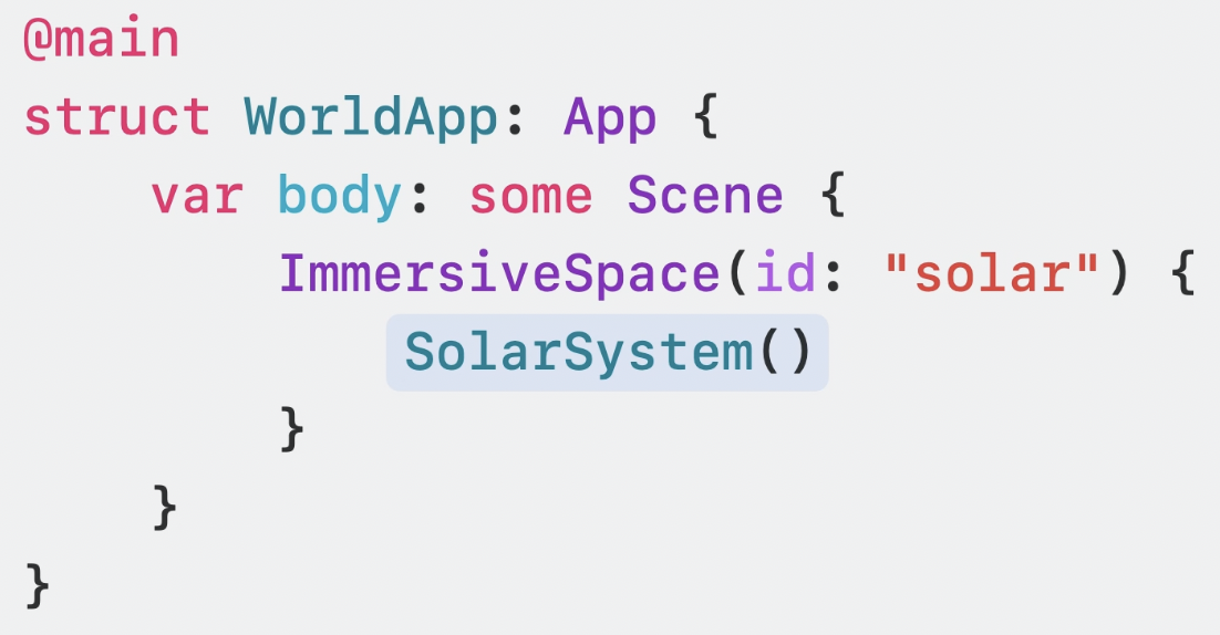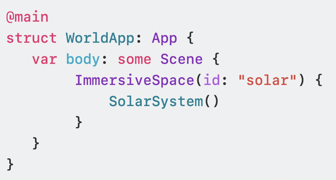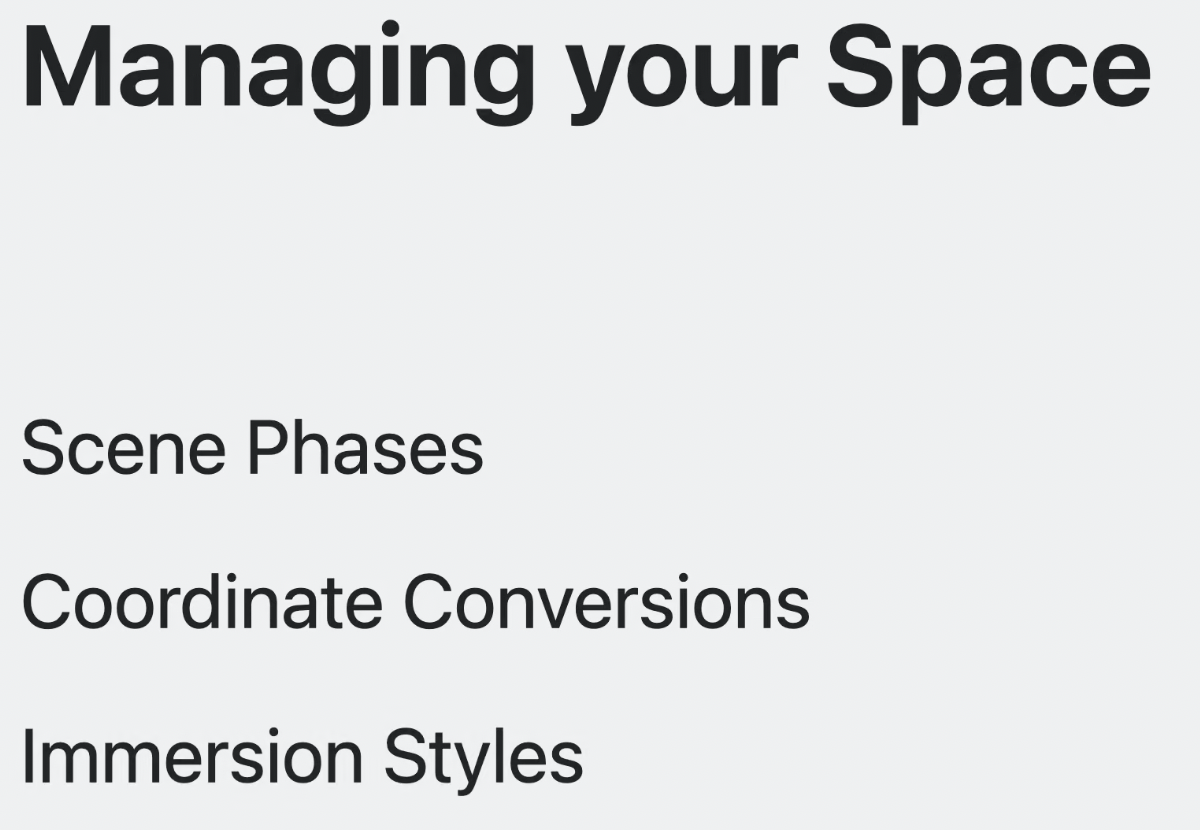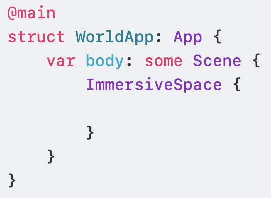 Space는 새로운 scene type으로 SwiftUI에서 Immersive Space라고 부른다.