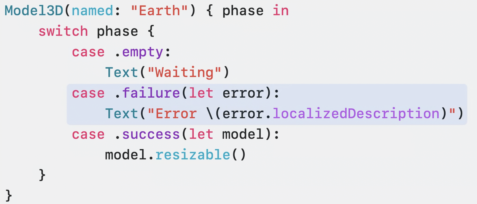 최상의 유저 경험을 위해서 새로운 Model3D와 RealityView API들을 활용해서 3D asset들을 비동기적으로 호출할 수 있게 해라.