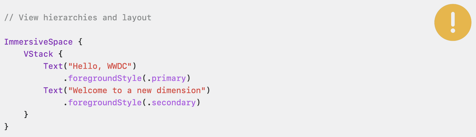ImmersiveSpace는 어떠한 SwiftUI view도 가질 수 있고 clipping bounds가 없지만 layout 경계 내에서 콘텐츠를 배치한다.
