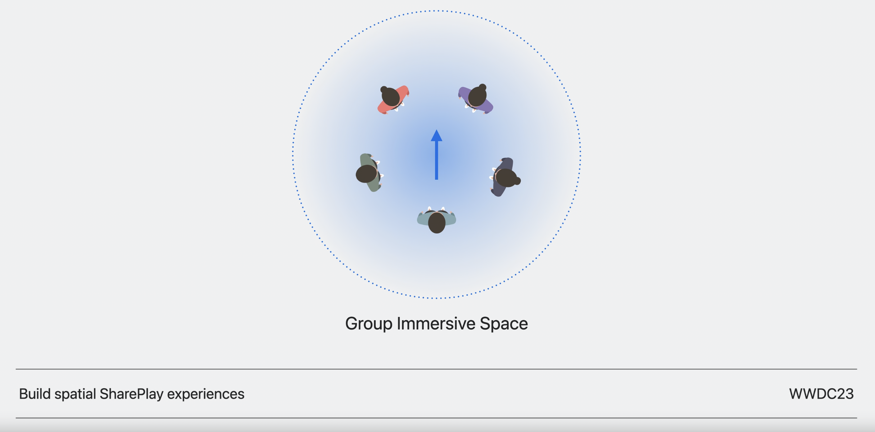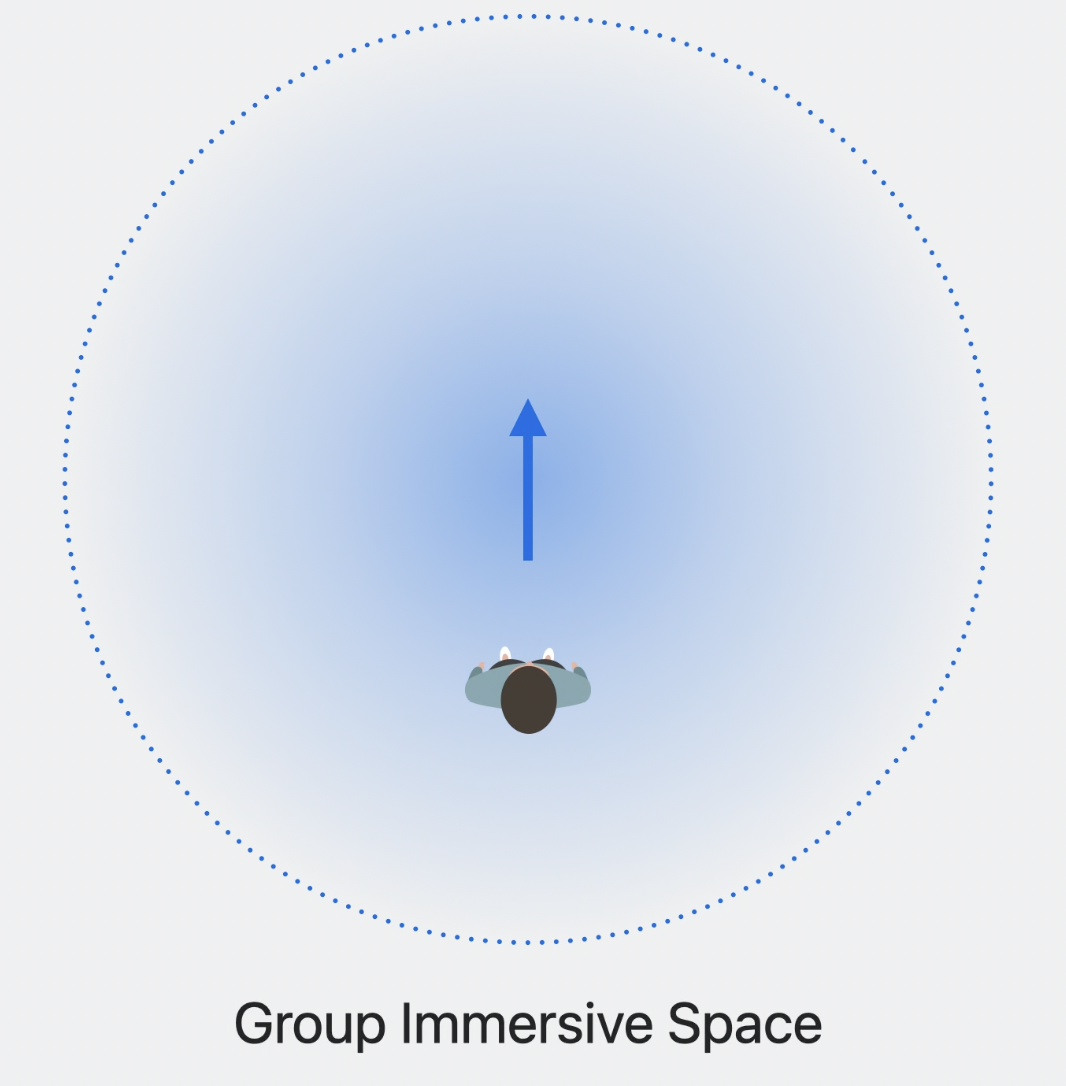 만약 앱이 SharePlay와 Group Immersive Space를 지원한다면, 다른 참가자가 합류하면 시스템은 spatial template에 의해 정의된 shared location으로 원점을 움직인다.