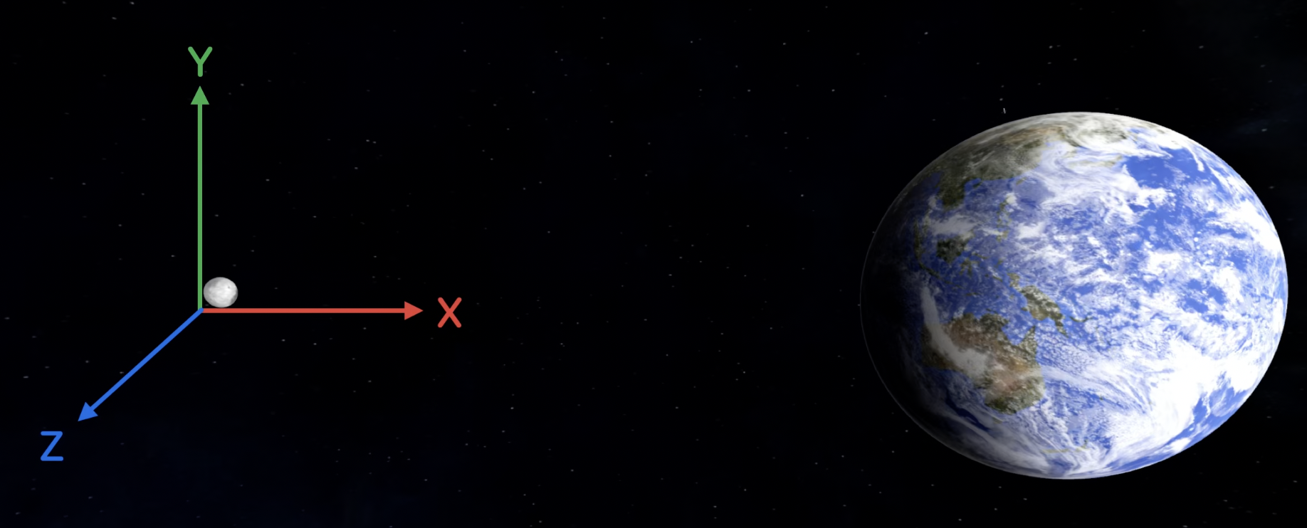 따라서 Space에 배치한 모든 것들은 space의 원점에 상대적으로 위치하게 된다.