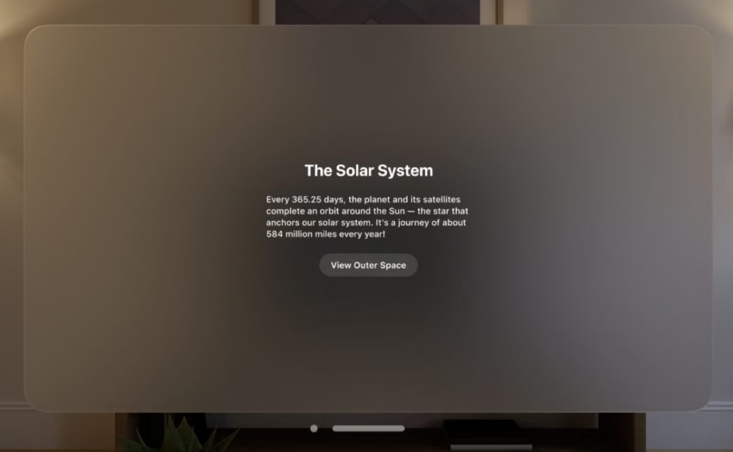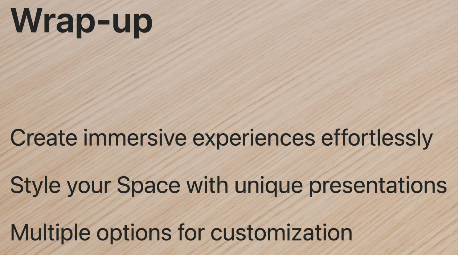 Immersion Style은 space 콘텐츠가 주변 환경을 어떻게 장악할 수 있는지에 대한 다양한 프레젠테이션을 제공한다.