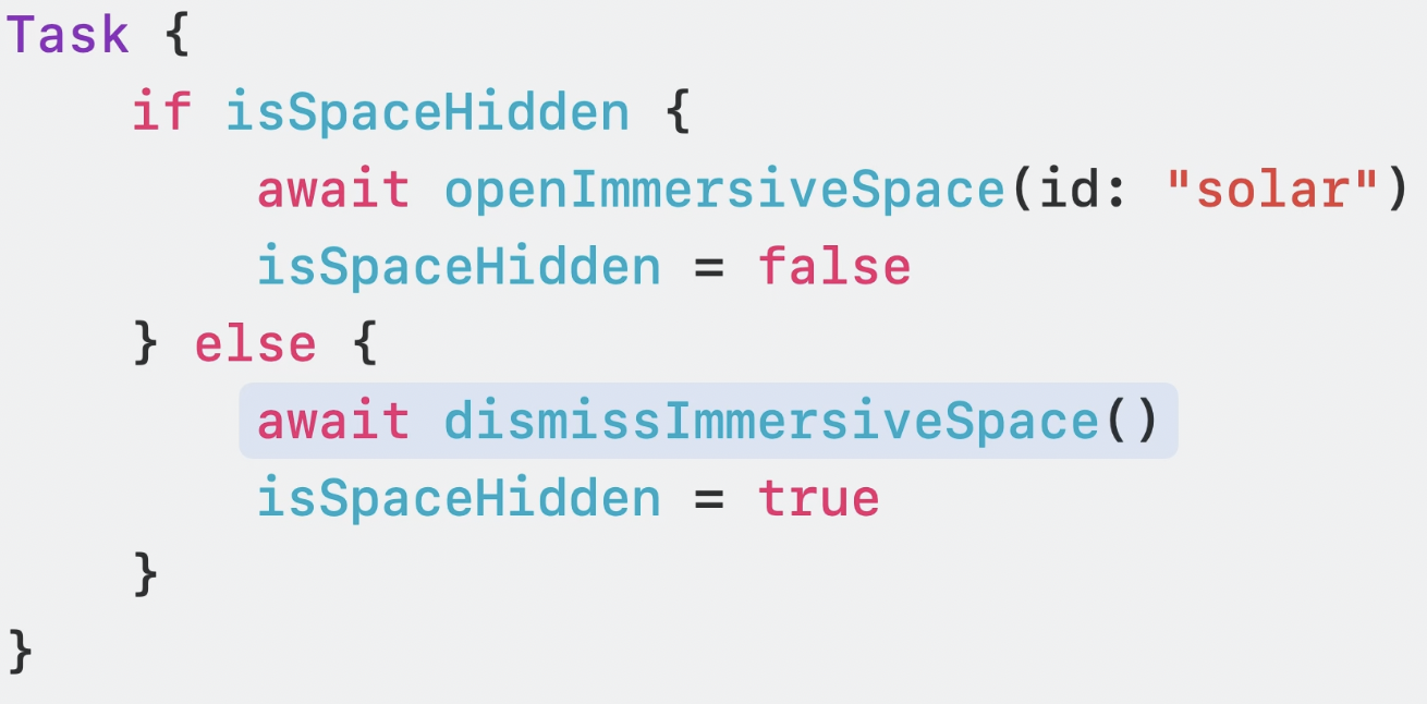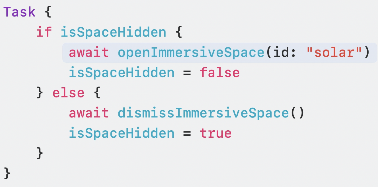 Immersive space를 여는 것은 실패할 수도 있고, openImmersiveSpace는 result를 통해 fail인지 sucess인지 알려준다.