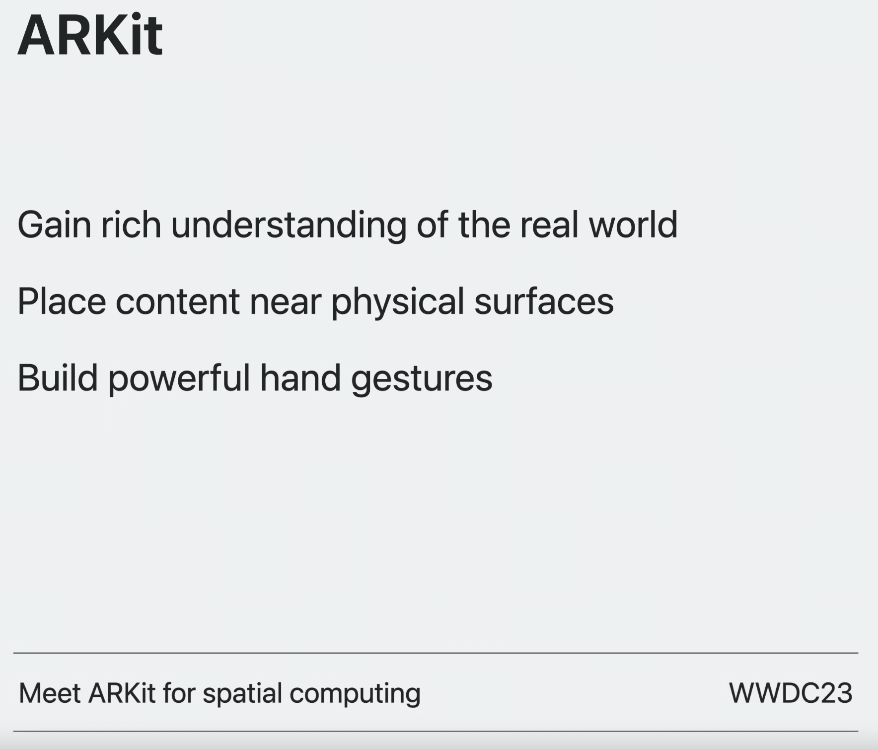 ARKit의 worldtracking, scene understanding 등의 API를 통해 실세상의 표면에 물체를 위치시킬 수 있게 된다.
