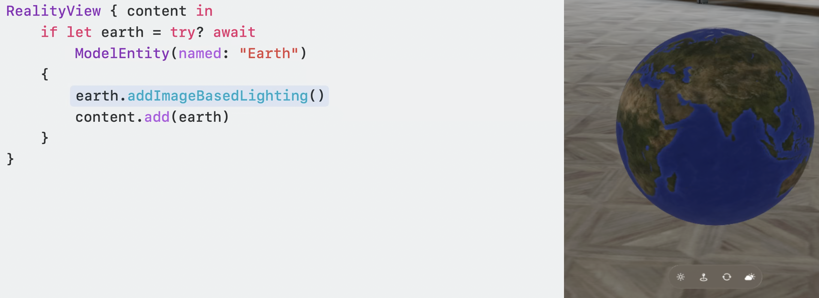 지구에 빛을 추가해주고 싶어서 image-based lighting에 대해 이미 작성해놓은 RealityKit code를 추가해준다.