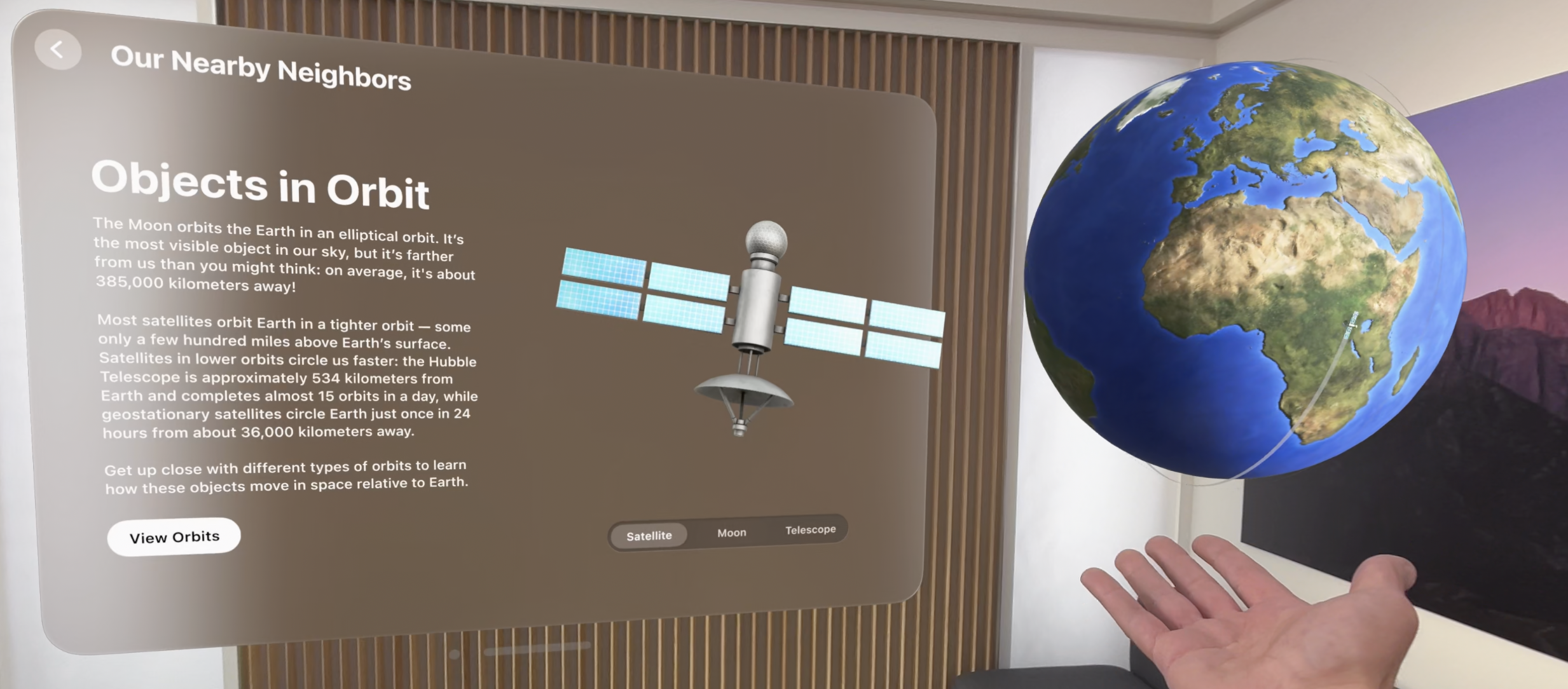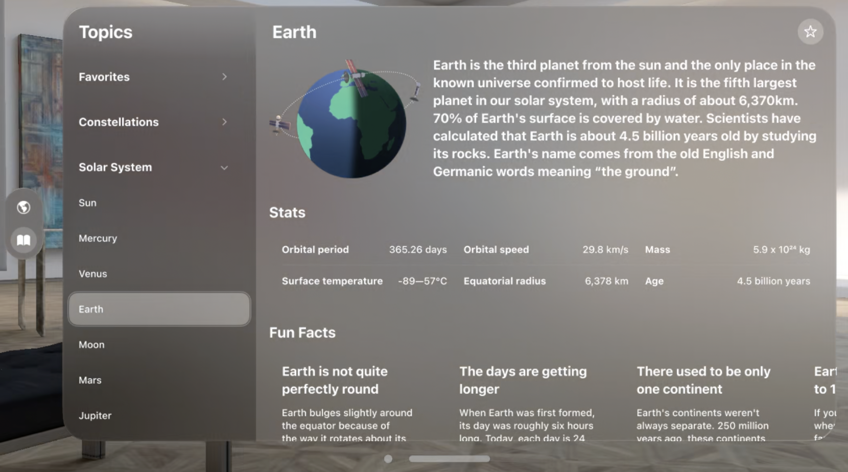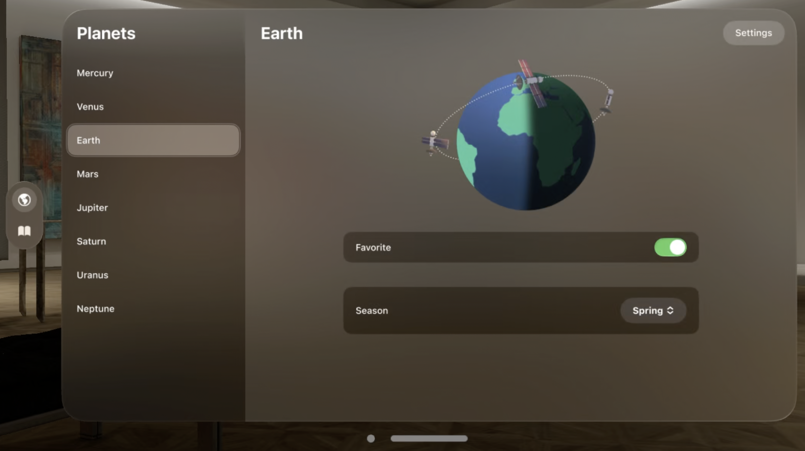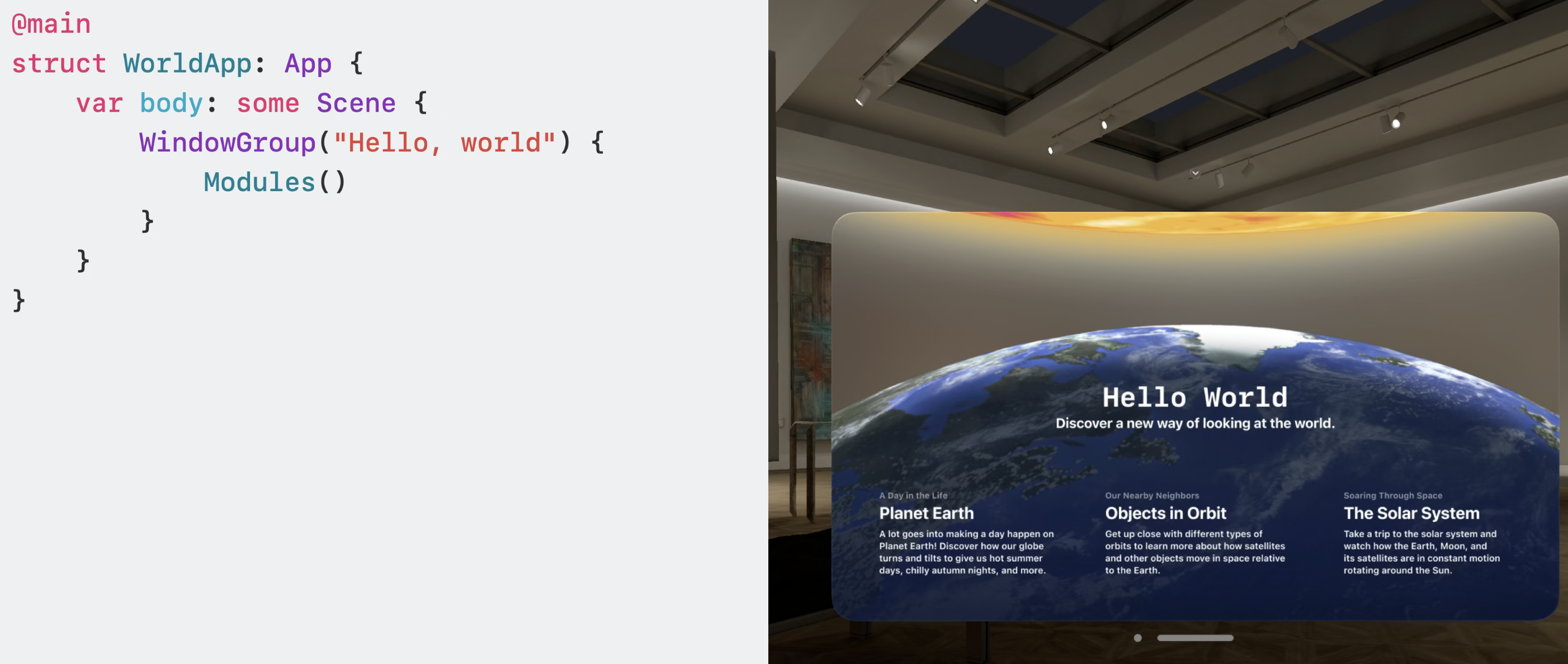 3D 지구 모델을 display하기 위해 RealityKit의 새로운 Model3D API를 사용한다. 이 API를 통해 손 쉽게 앱에 3D 콘텐츠를 추가할 수 있다.