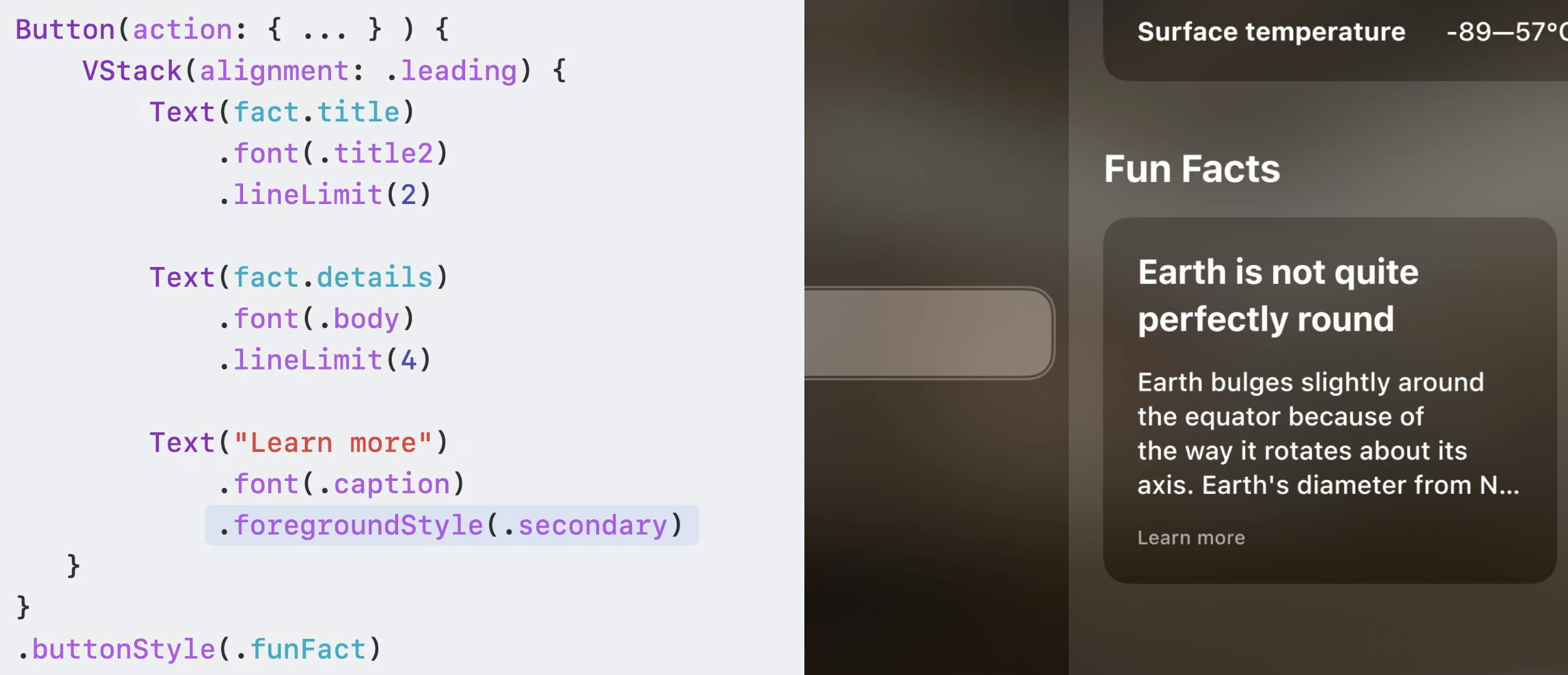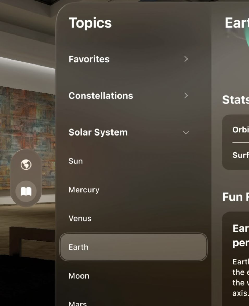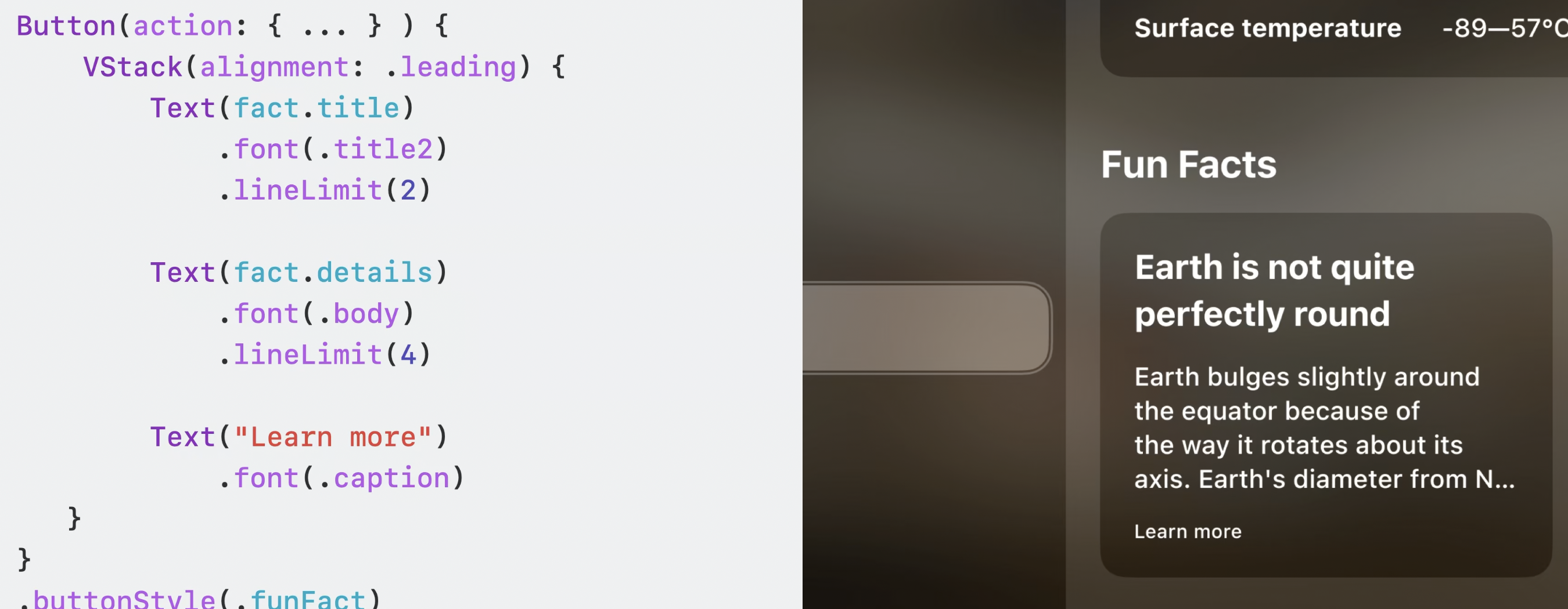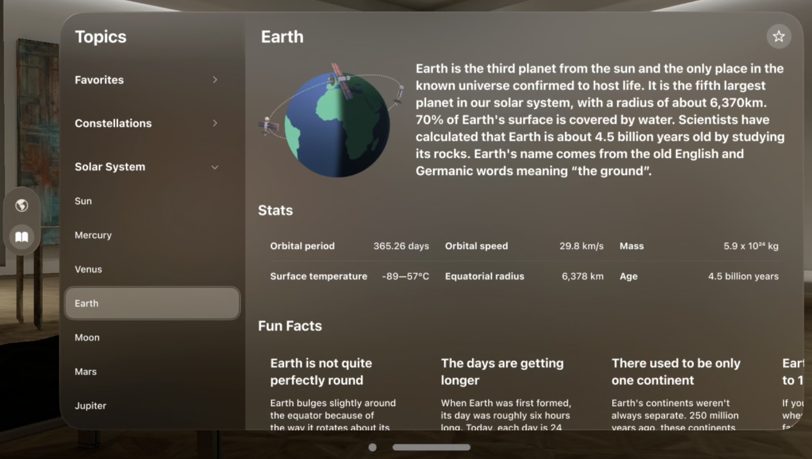 3D 지구 모델을 display하기 위해 RealityKit의 새로운 Model3D API를 사용한다. 이 API를 통해 손 쉽게 앱에 3D 콘텐츠를 추가할 수 있다.