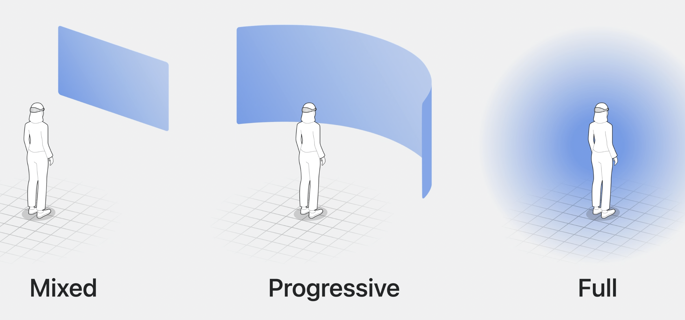 Full Space에는 여러 종류의 immersion style이 존재하고, 이 스타일들 사이에 전환도 가능하다.
