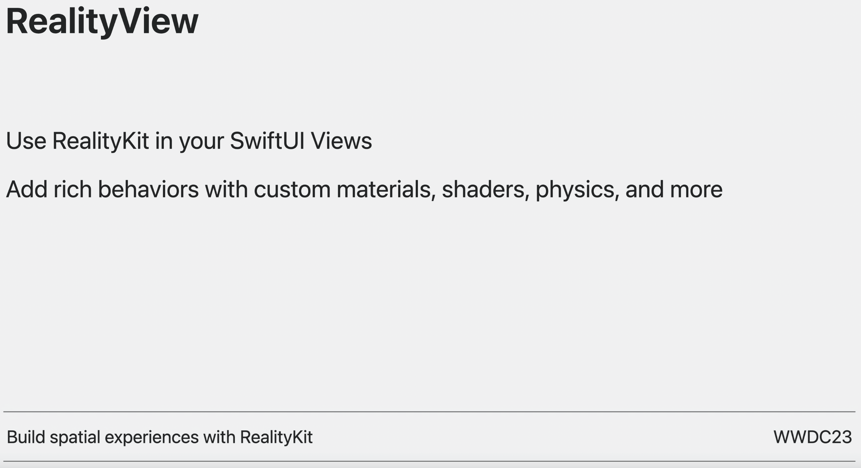 RealityView는 RealityKit의 full power를 쉽게 사용할 수 있는 새로운 SwiftUI view이다.