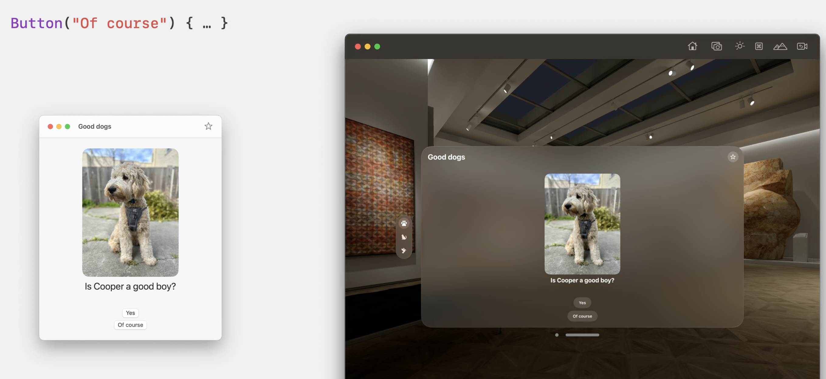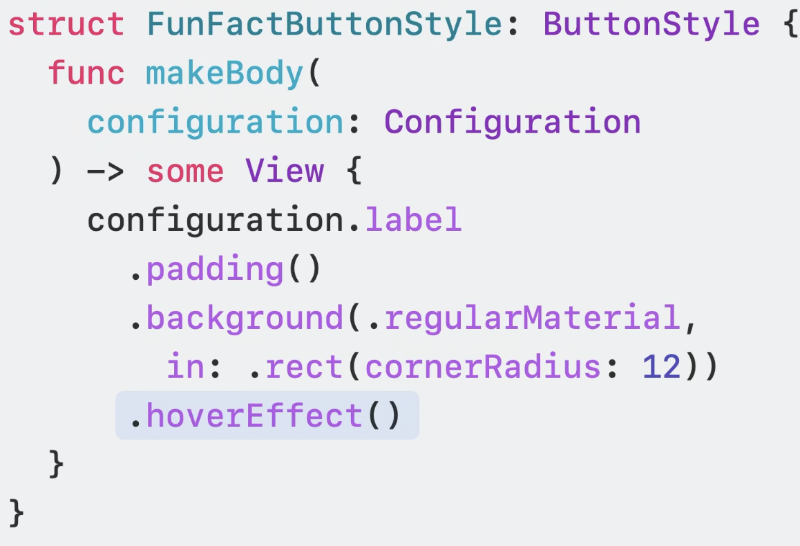 마지막으로 컨트롤이 훌륭하고 grounded됨을 느낄 수 있도록 새로운 유리 BackgroundEffect modifier를 사용하여 이전에 standard window에서 사용했던 것과 동일한 아름다운 유리 효과를 제공한다.