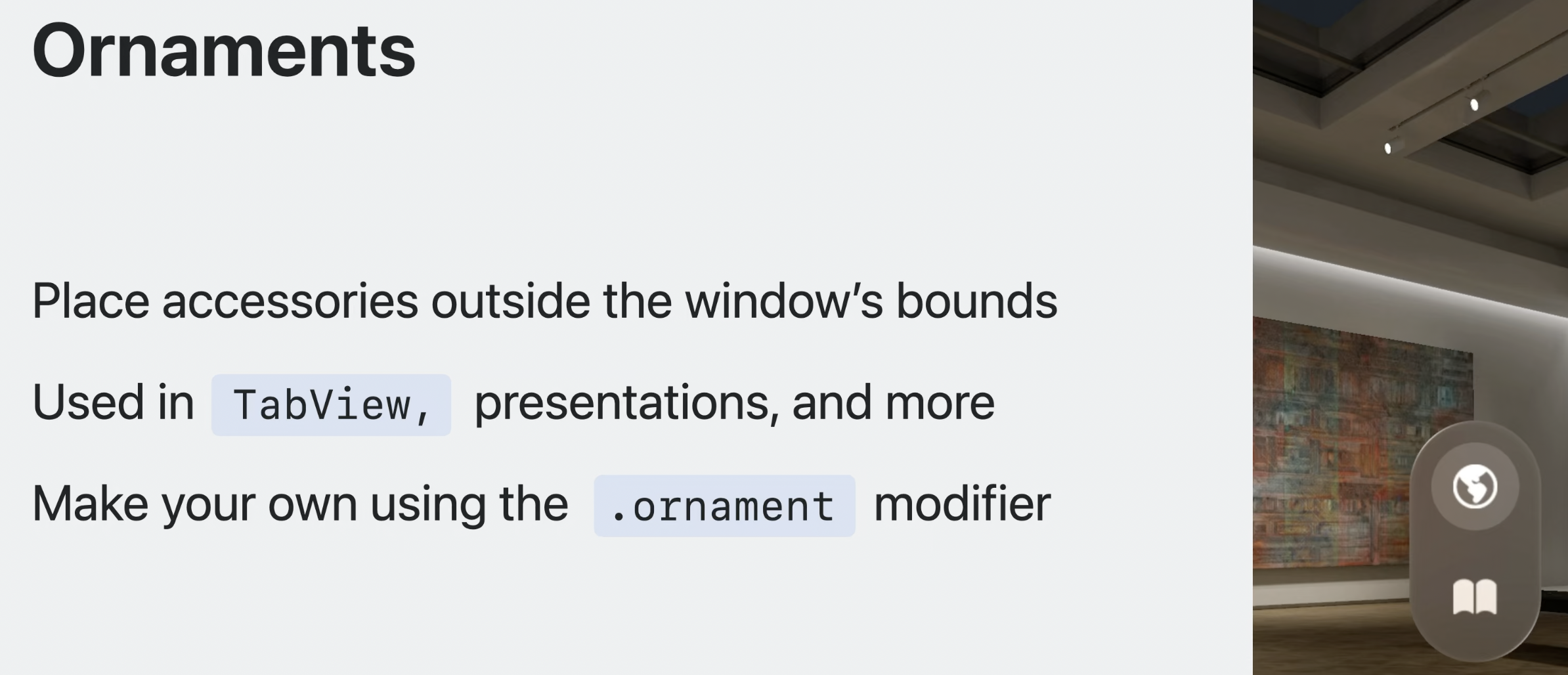 TabView는 새롭게 등장한 SwiftUI의 'Ornaments'에 대한 아주 좋은 예시이다.